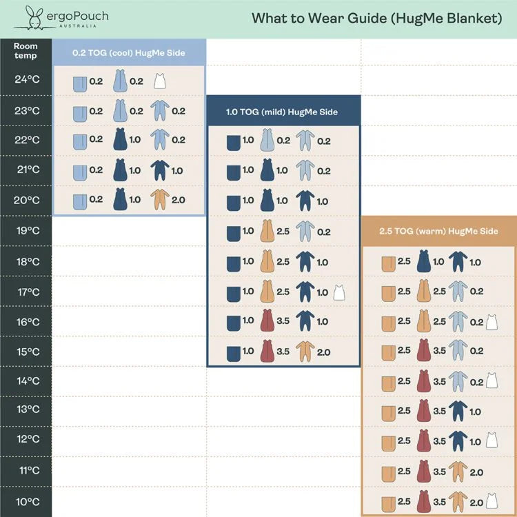 The HugMe Blanket features two TOG-rated sides, allowing you to tailor warmth and firmness to your baby’s needs and room temperature: