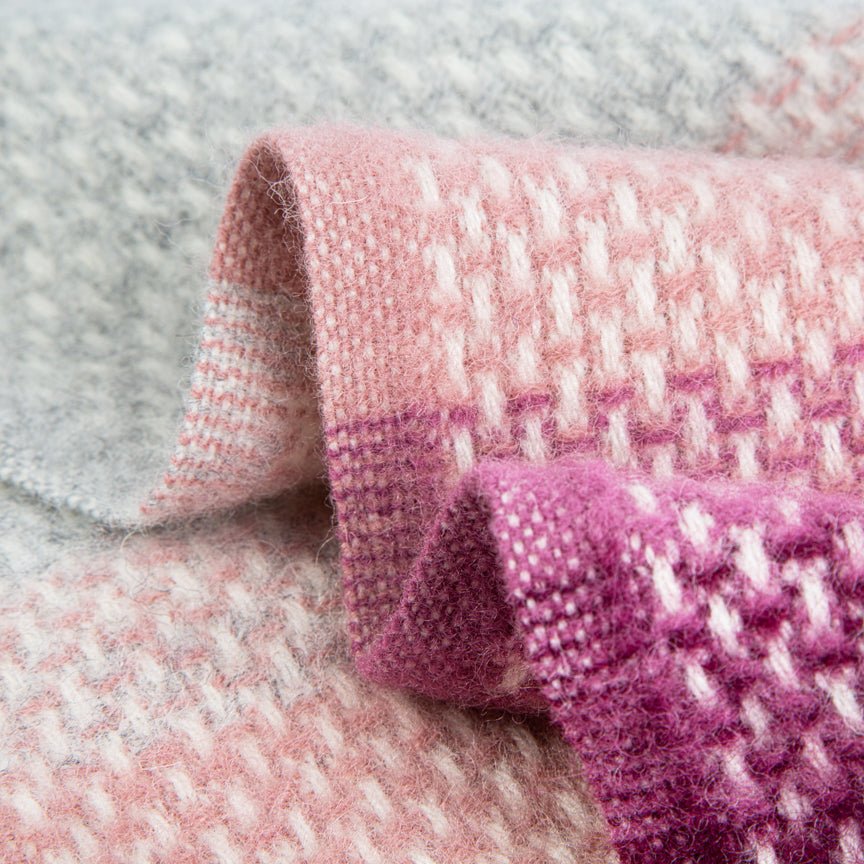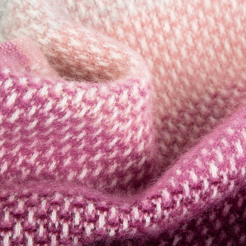 Grey , Wine & Pink Evening Tales - Pure New Wool Blanket - Super Fluffy