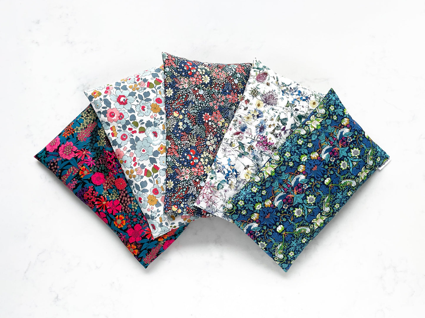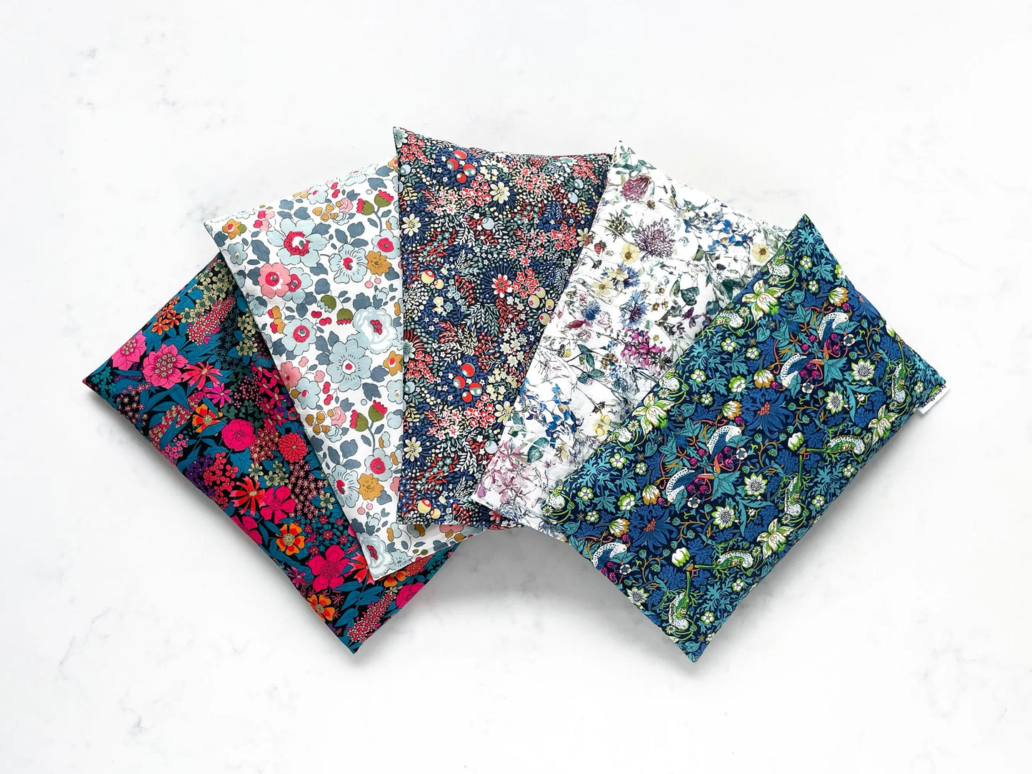 A relaxing eye pillow fragranced with lavender and chamomile, made with Liberty Fabric.