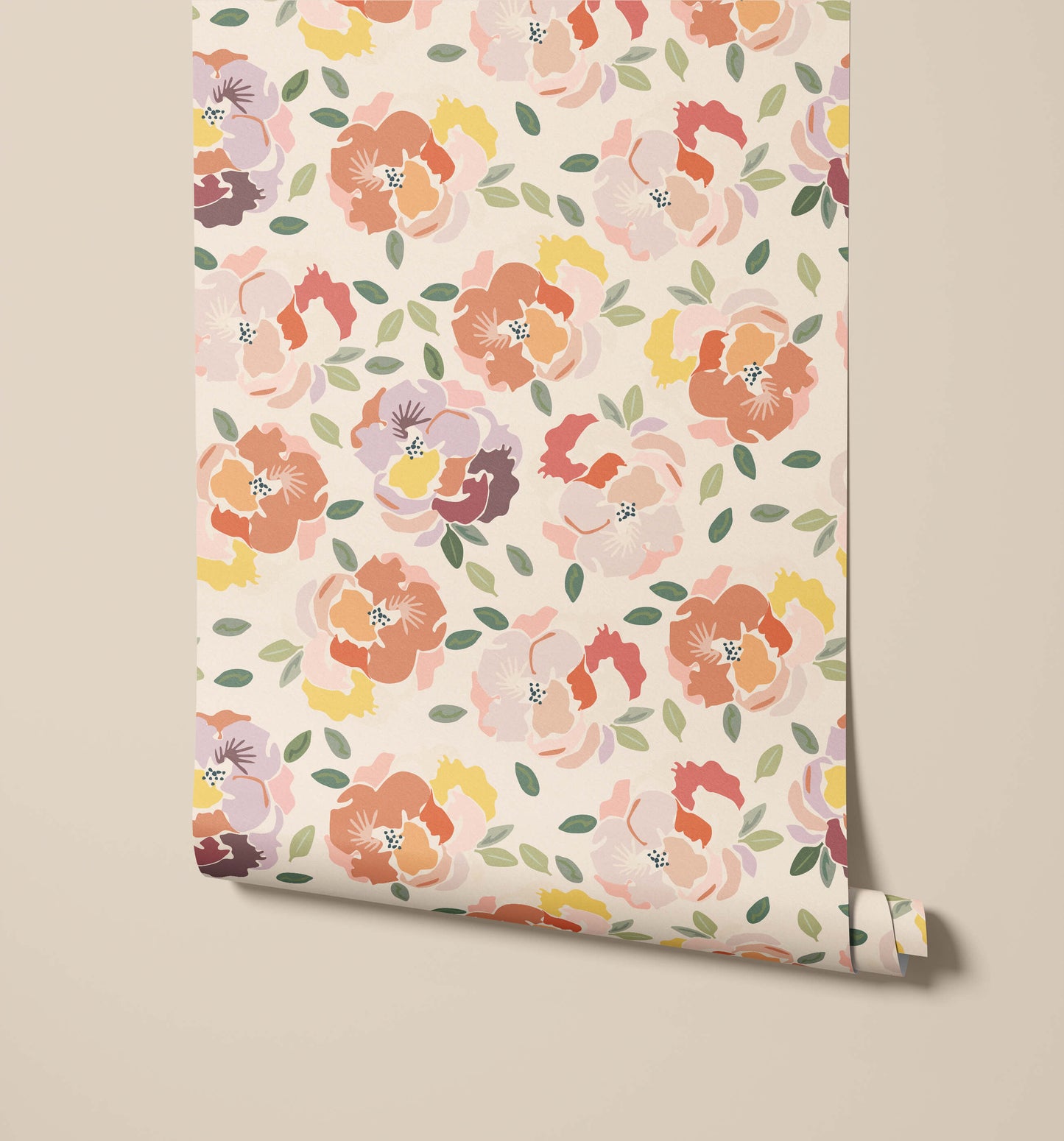 Fika is a bold wallpaper that uses pansies as the main focal point. Created using block colours, it strikes a lovely balance between the naive drawing style and the vibrant detail of pansies.