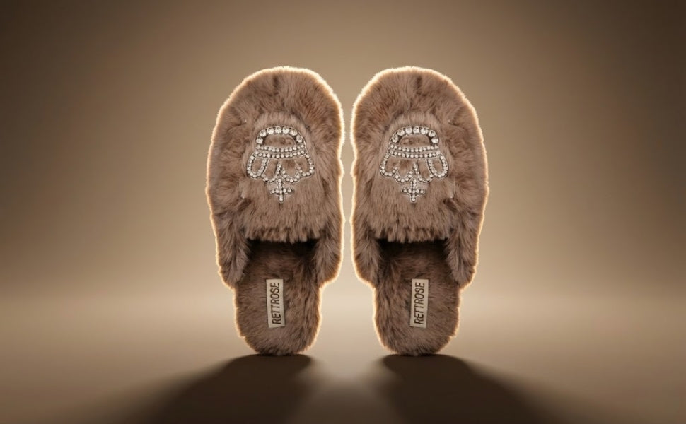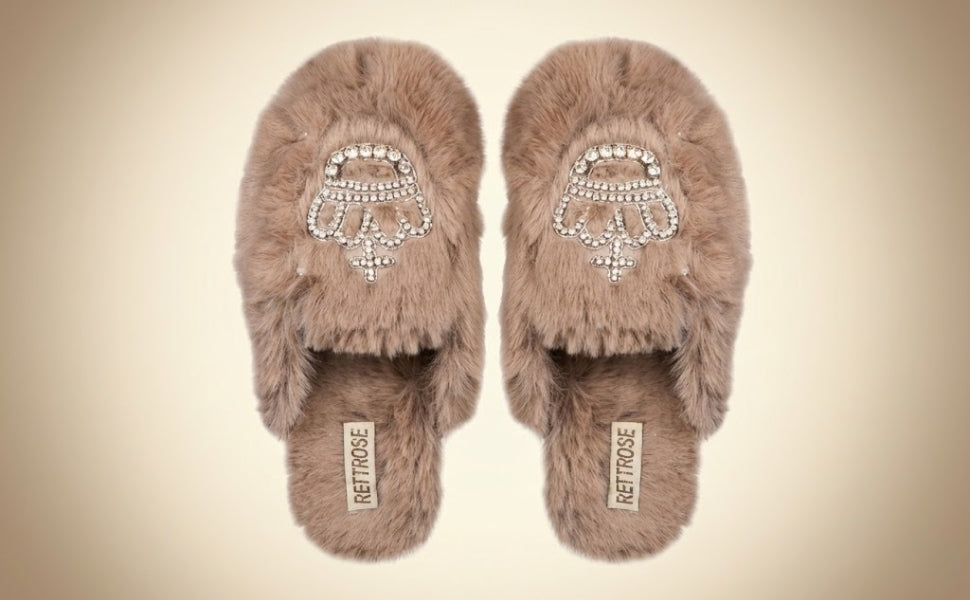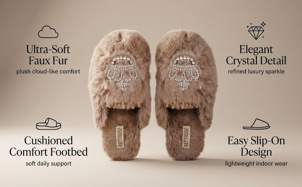 Step into ultimate comfort and luxury with the RETTROSE Finley Beige Faux Fur Diamanté Embellished Slippers for Women. These stylish women’s slippers are made from ultra-soft faux fur in a refined mink beige colour, offering a chic, cozy experience for your feet.