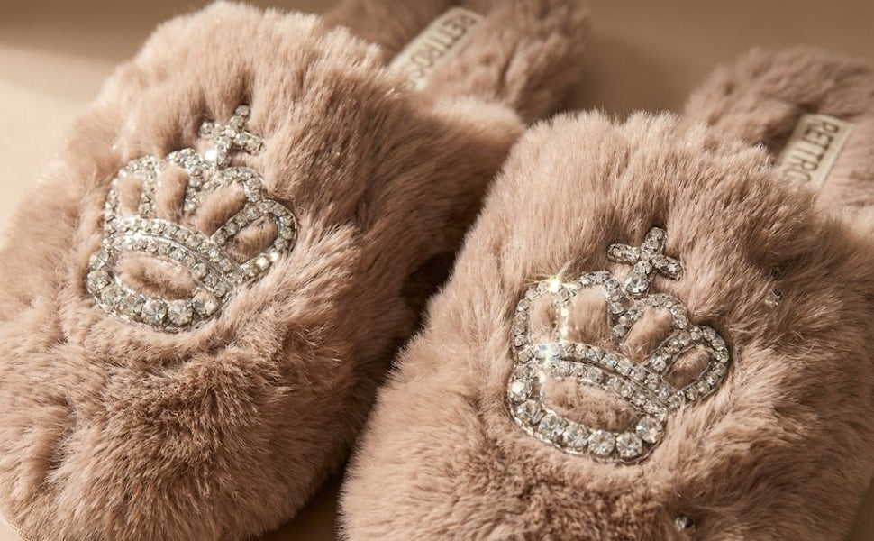 Finley Beige Luxury Faux Fur Comfortable Diamanté Embellished Women’s Slippers for women