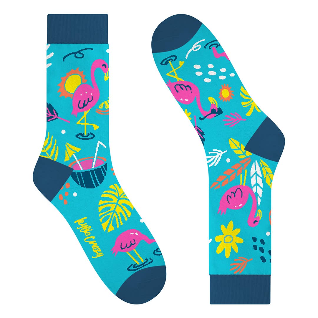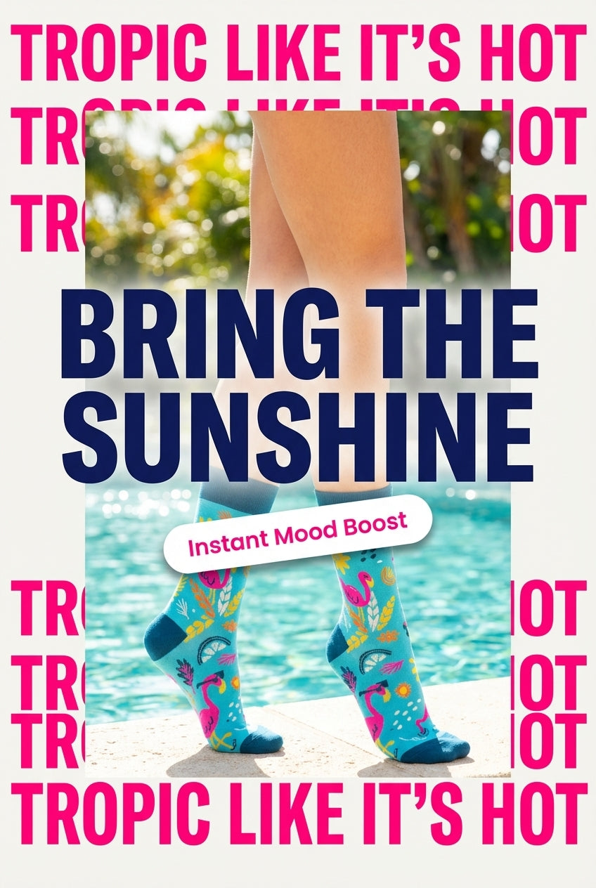 Turn up the tropical and flamingle with flair! These “Tropic Like It’s Hot” socks are bursting with beachy vibes, bold colors, and fabulous flamingos that know how to party. Whether you’re daydreaming of a getaway or just want your toes to feel like they’re on vacation, these socks bring the sunshine to any outfit.