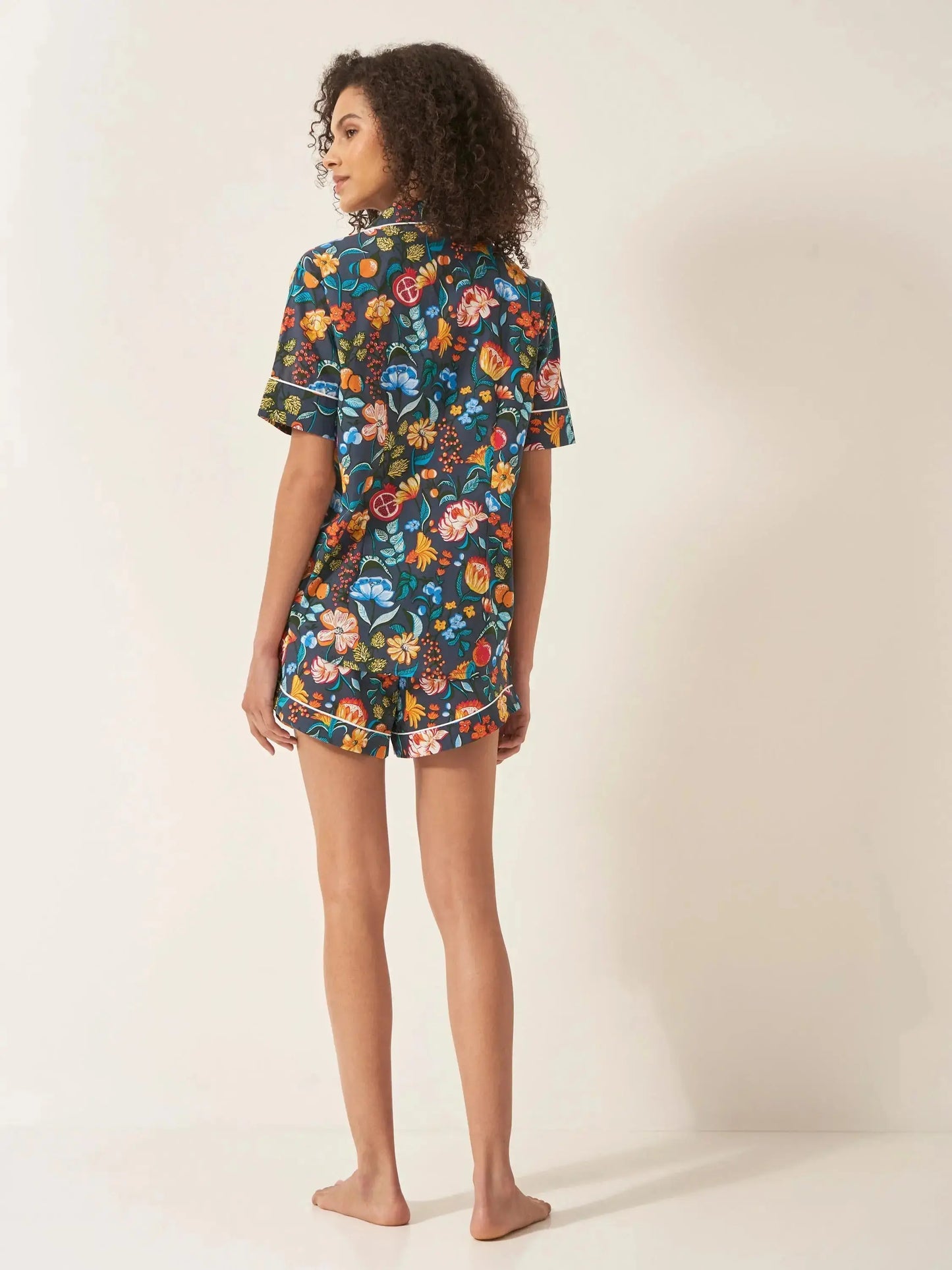 Florals on Navy Women's Short Sleeve Organic Cotton Pyjama Short Set