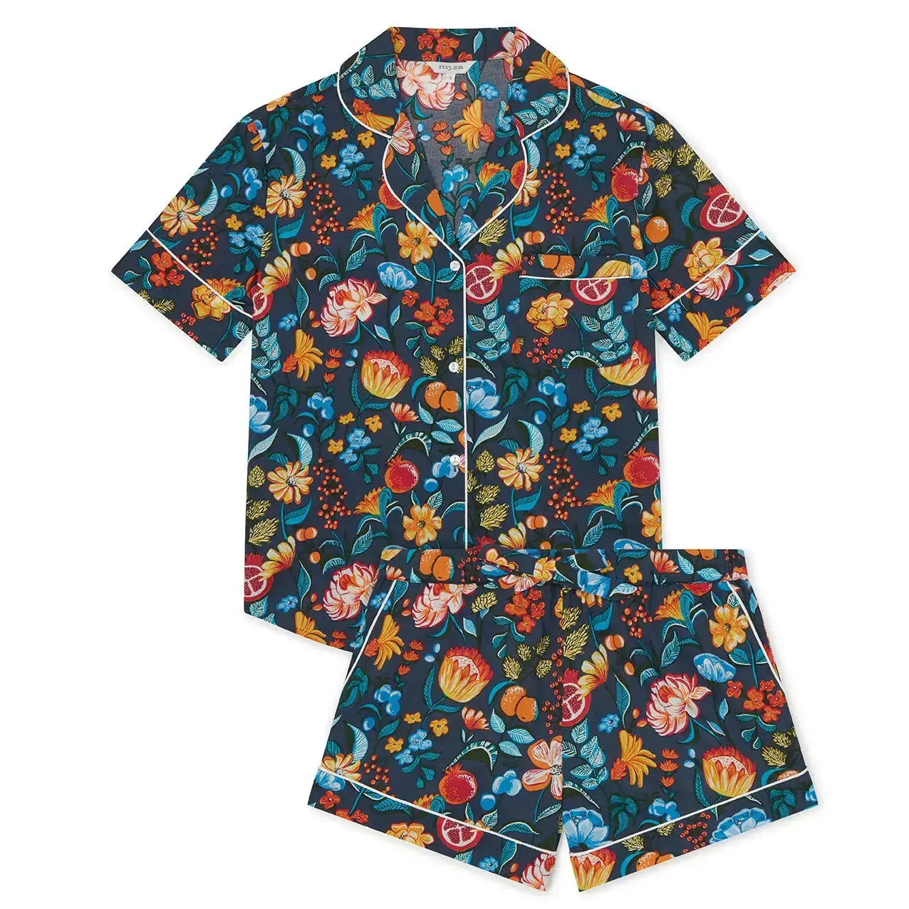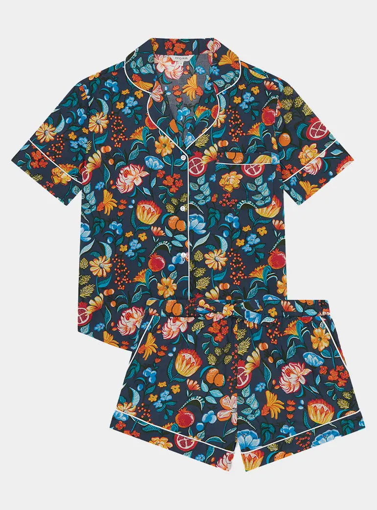 Florals on Navy Organic Cotton Pyjama Short Set – A Perfect Blend of Classic Elegance and Modern Comfort