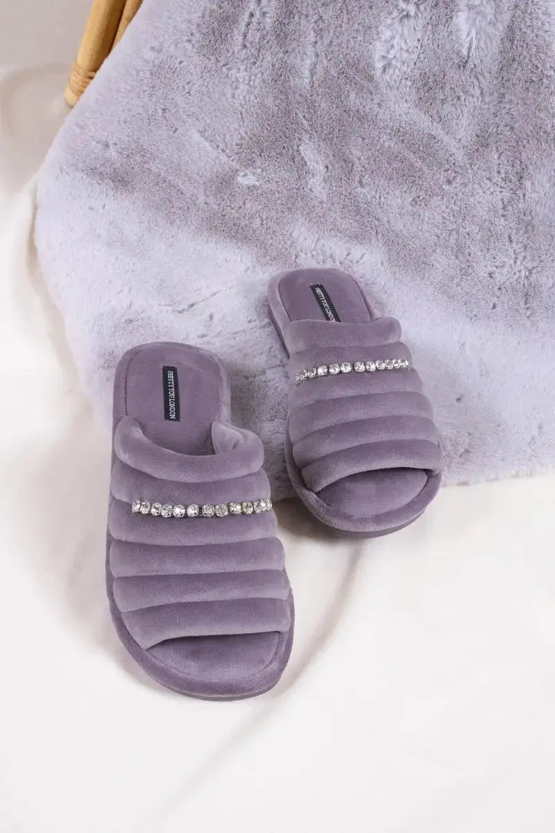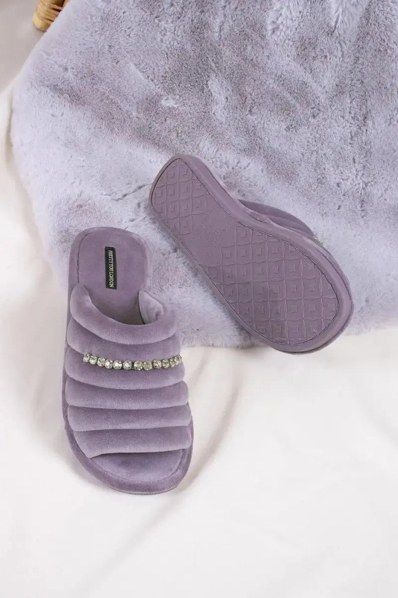 Designed to elevate your downtime, the Frankie Slippers by Pretty You London combine super-soft microfibre with a glistening crystal diamante strap for a look that’s both luxurious and eye-catching.