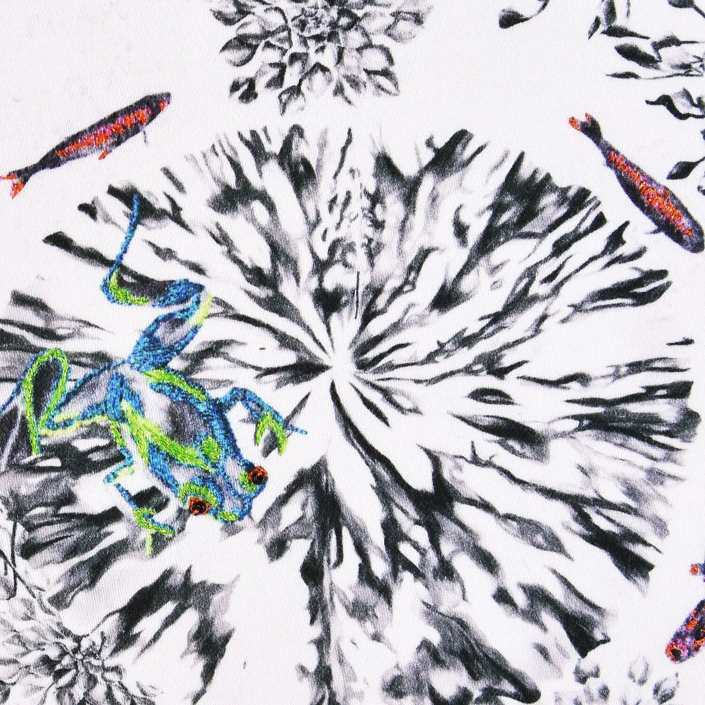 Botanical cushion with Green Frogs on a Lily Pad print and highlights of hand embroidery.