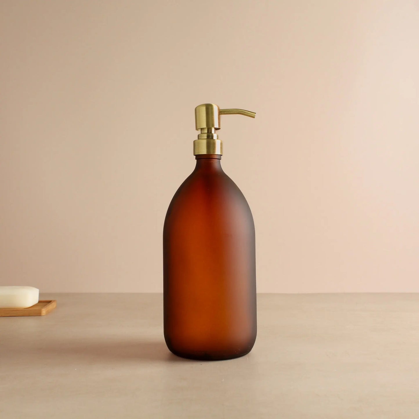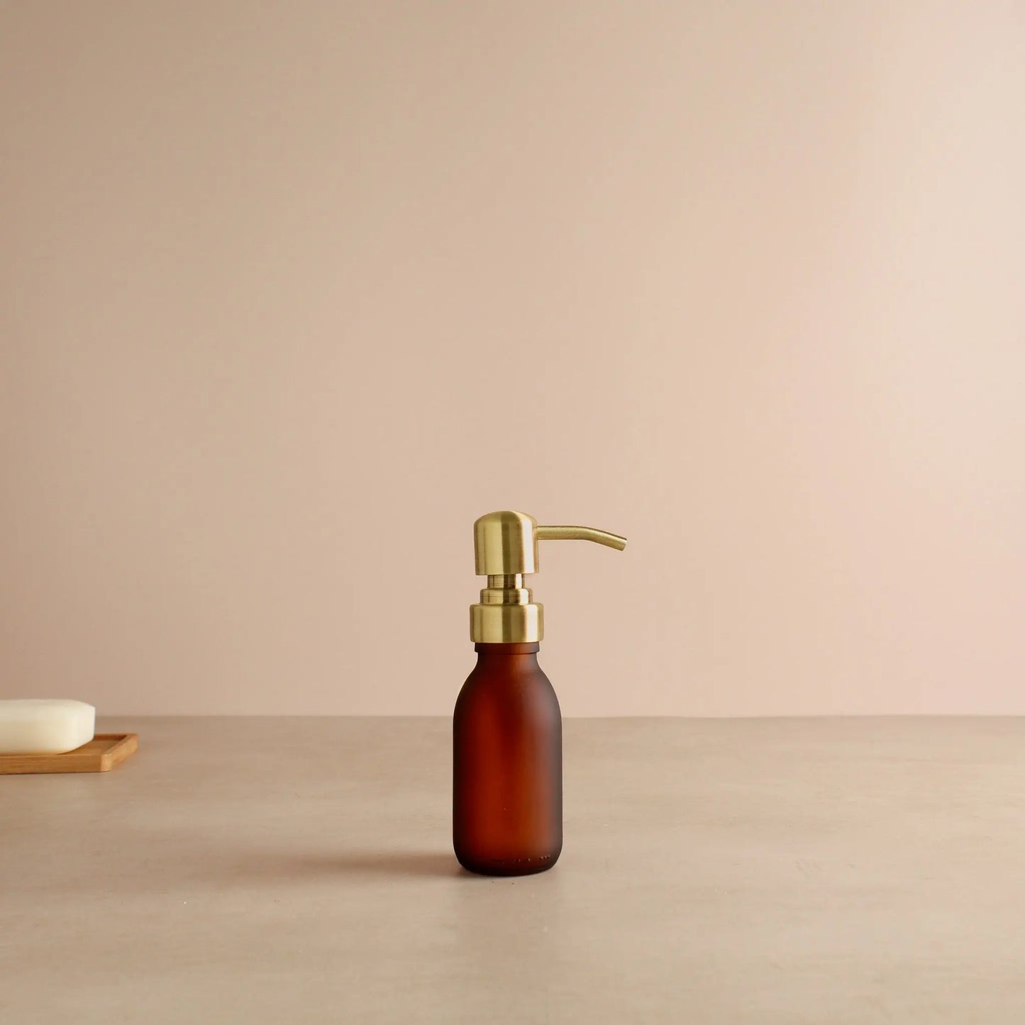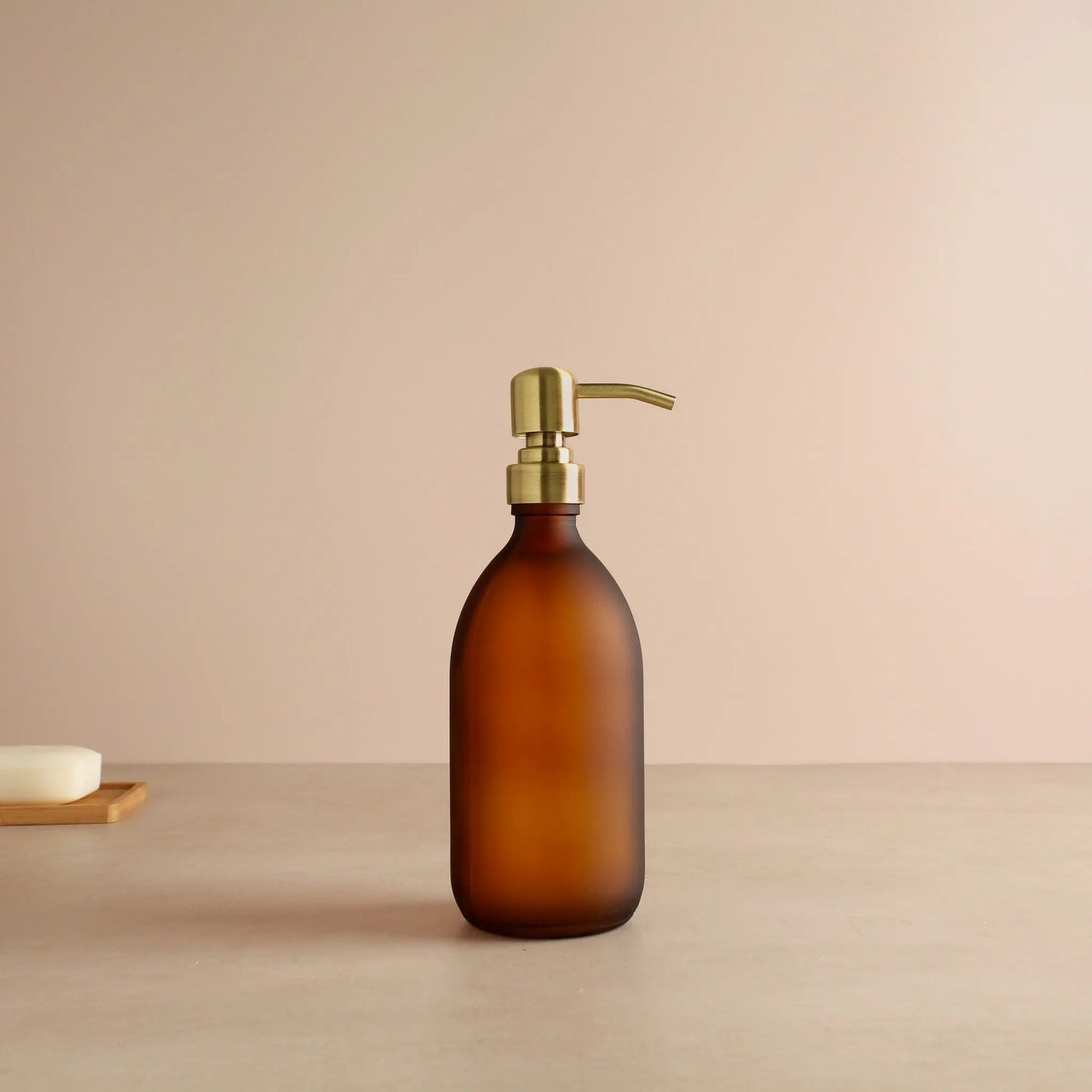 Frosted Amber Glass Dispenser Bottle With Gold Pump