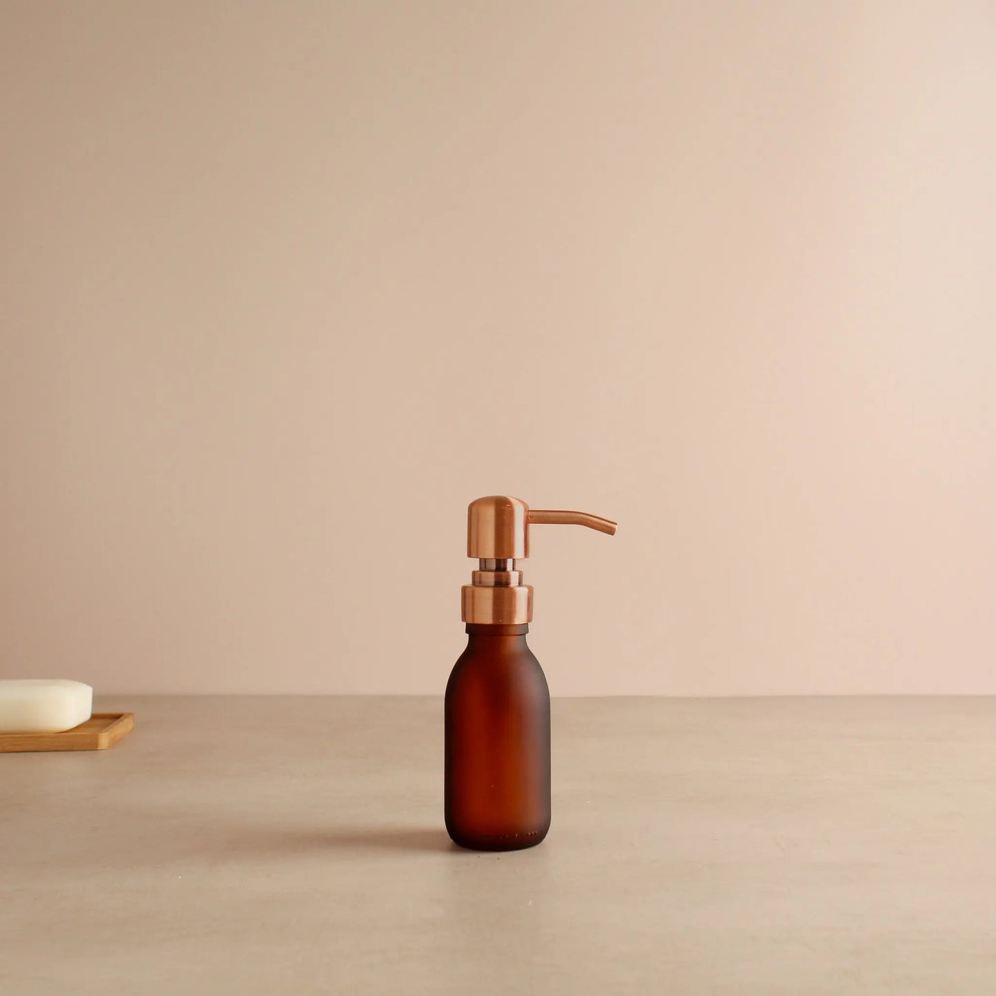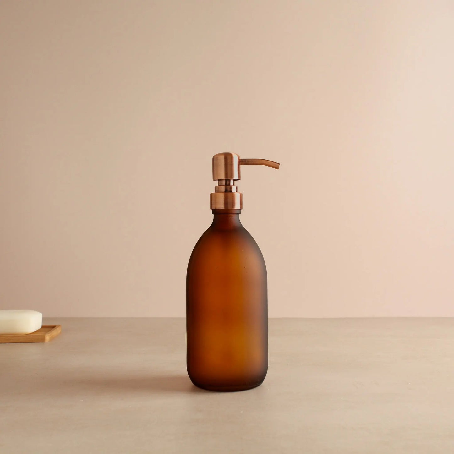 Frosted Amber Glass Dispenser Bottle With Rose Gold Pump