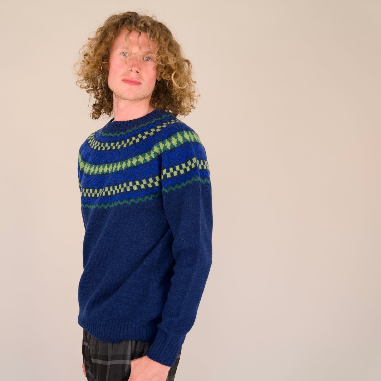 Regular price £115.00The unmistakable geometric patterns of the Fair Isle jumper have become a symbol of British culture and has long been a favourite of the Royal Family dating back to the 1920s. The Soho is our most technically advanced jumper due to the complex knitting techniques required for the seamless yoke pattern.