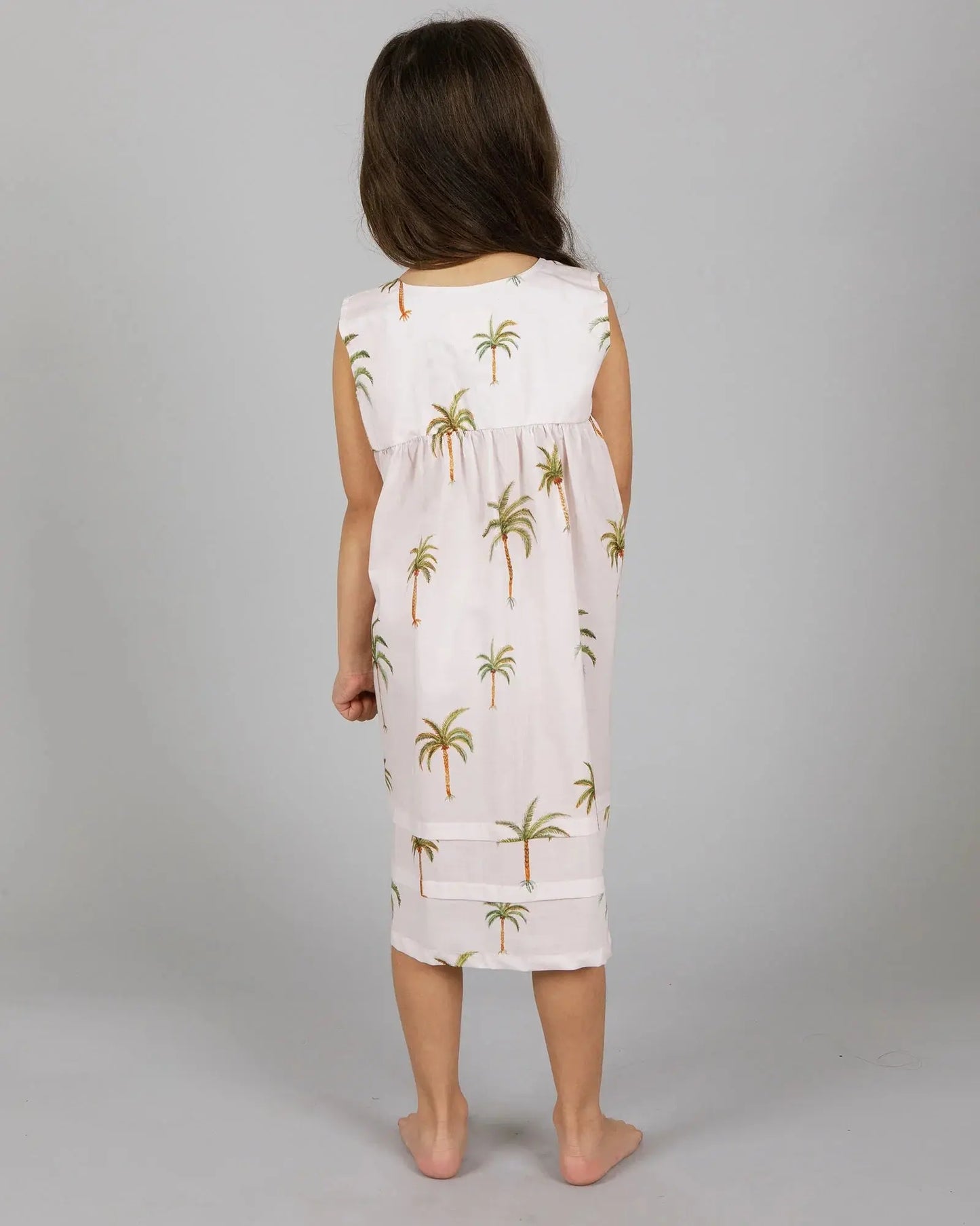 This handmade Girls' Nightie is cut to be comfy and relaxed, with a comfortable loose fit and gathered front. Crafted from soft organic cotton, it features our cute Playing Palm Trees pattern for a playful and breezy bedtime style.