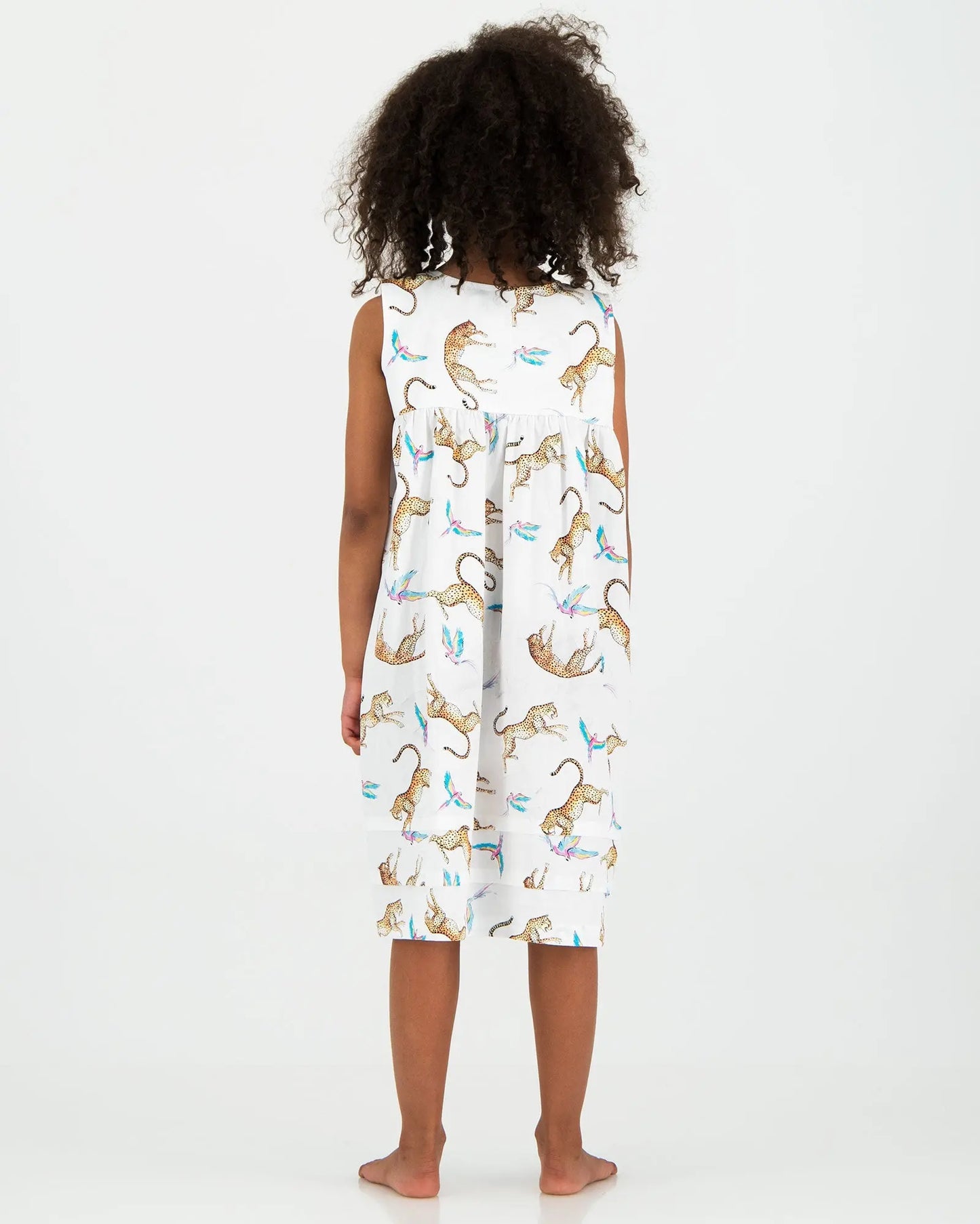 This handmade Girls' Nightie is cut to be comfy and relaxed, with a comfortable loose fit and gathered front. Crafted from soft organic cotton, it features our cute Playing Cheetahs pattern for a playful bedtime style.