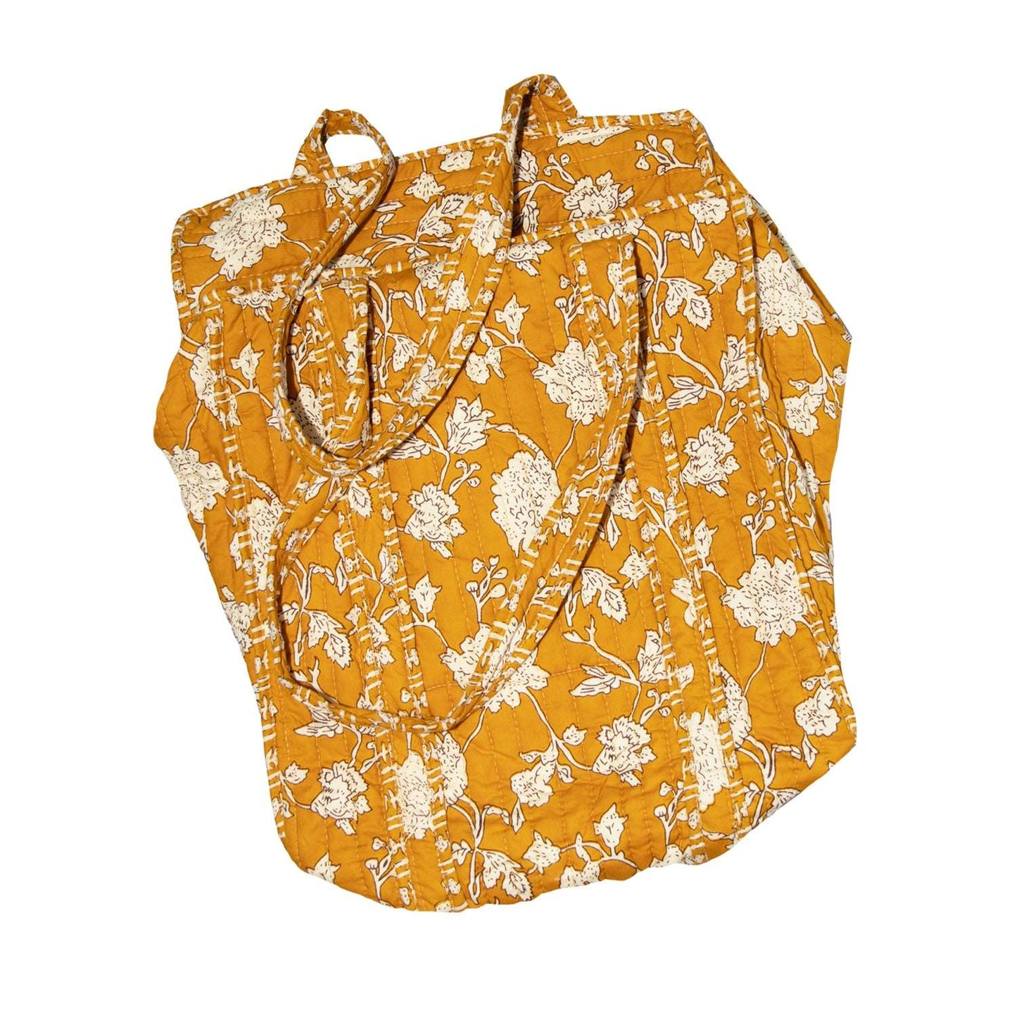 Our Golden Tulip cotton tote bag is inspired by golden hues of tulip petals basking in sunlight. Generous in size with a zipped close and a handy inner pocket, this classic tote holds all of your everyday essentials. Made from 100% Indian cotton, this tote is durable, soft, and has a bold golden pattern.
