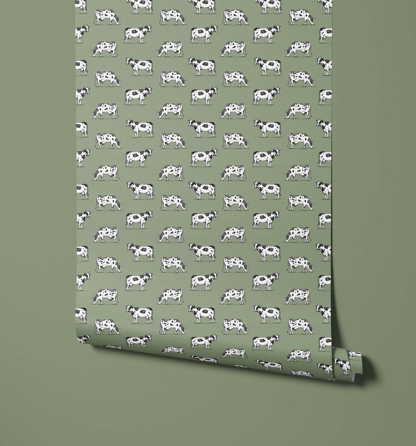 If you're looking for the ultimate farmhouse wallpaper design, then look no further than our charming cow pattern wallpaper. The design features hand-illustrated Friesian cows in a simple pattern layout. It comes in a variety of colours that have been carefully selected from farmhouse inspired palettes.