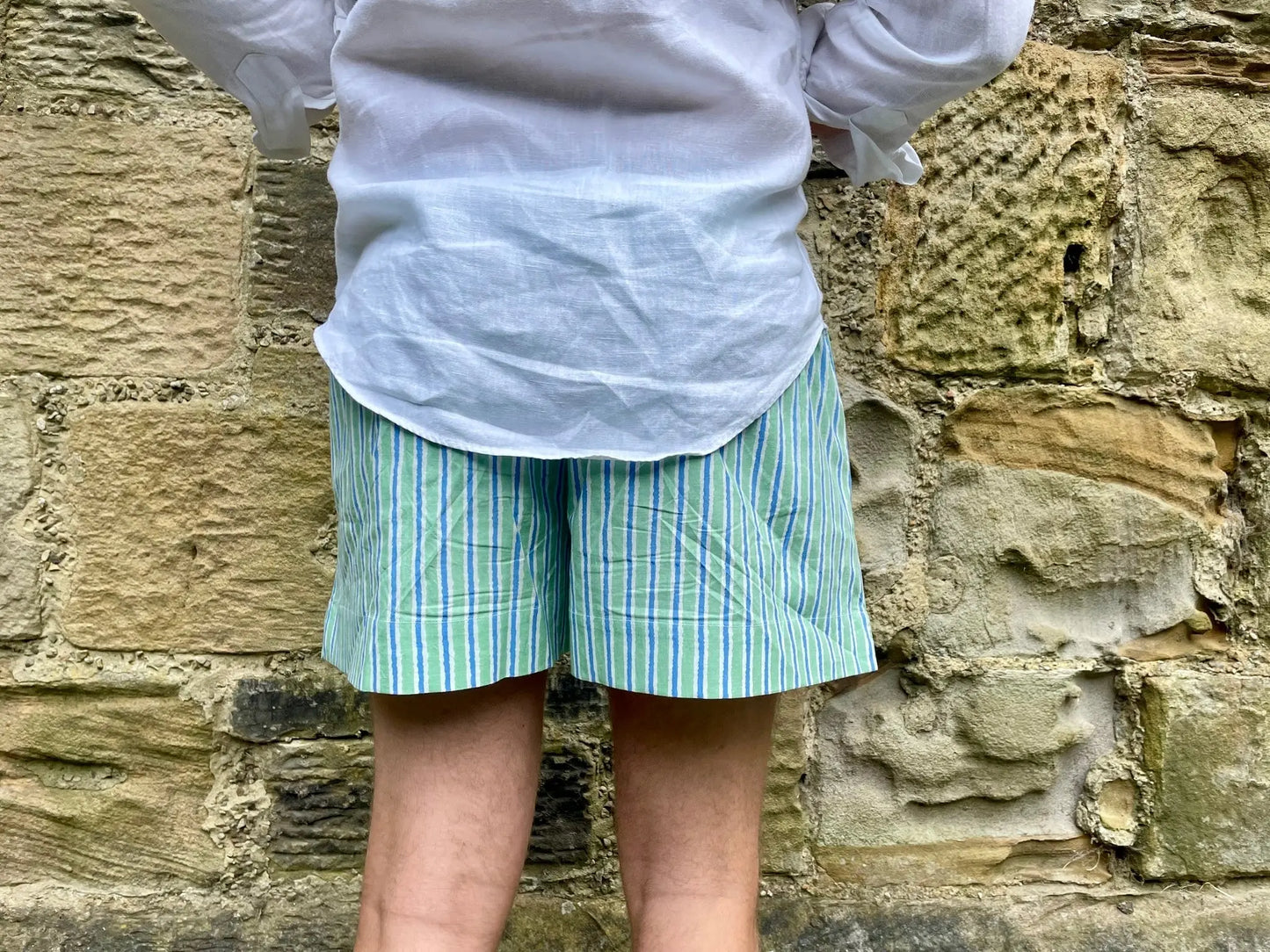 Screen printed unisex boxers handmade in Jaipur. Perfect for lazy days, sleep wear, underwear or a beach trip! Our shorts are made with poplin cotton so they are light and breathable, whilst holding their shape. Each pair has a thick elasticated waistband, a concealed front opening with button, and side slit details. The fabric is hand printed so please allow for small discrepancies in designs as each pair is unique.