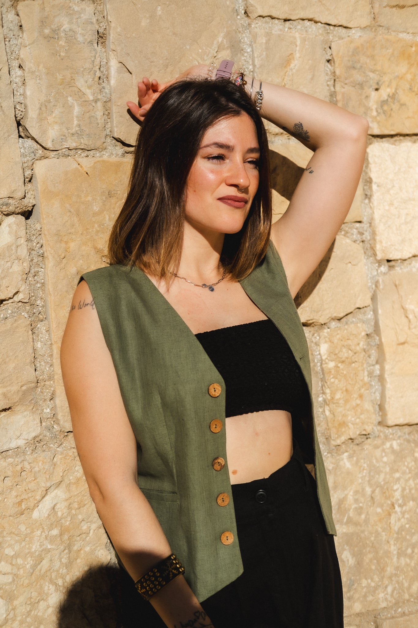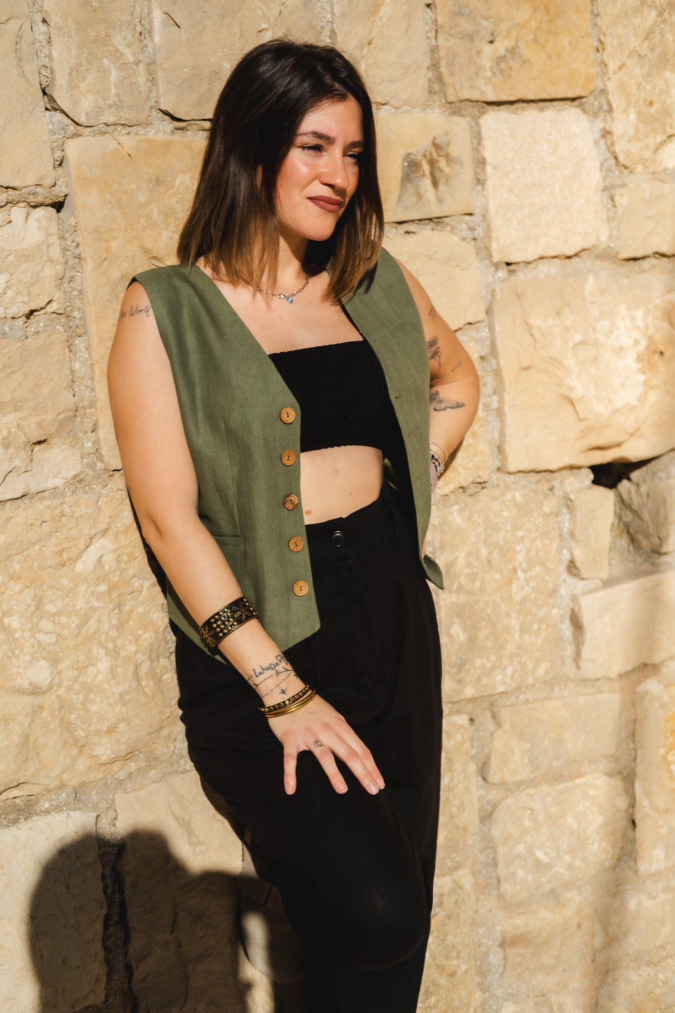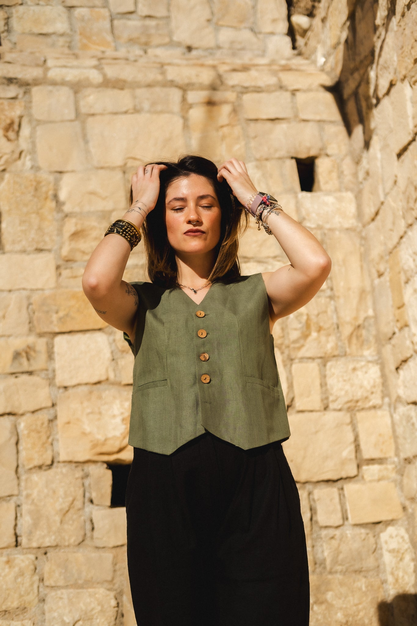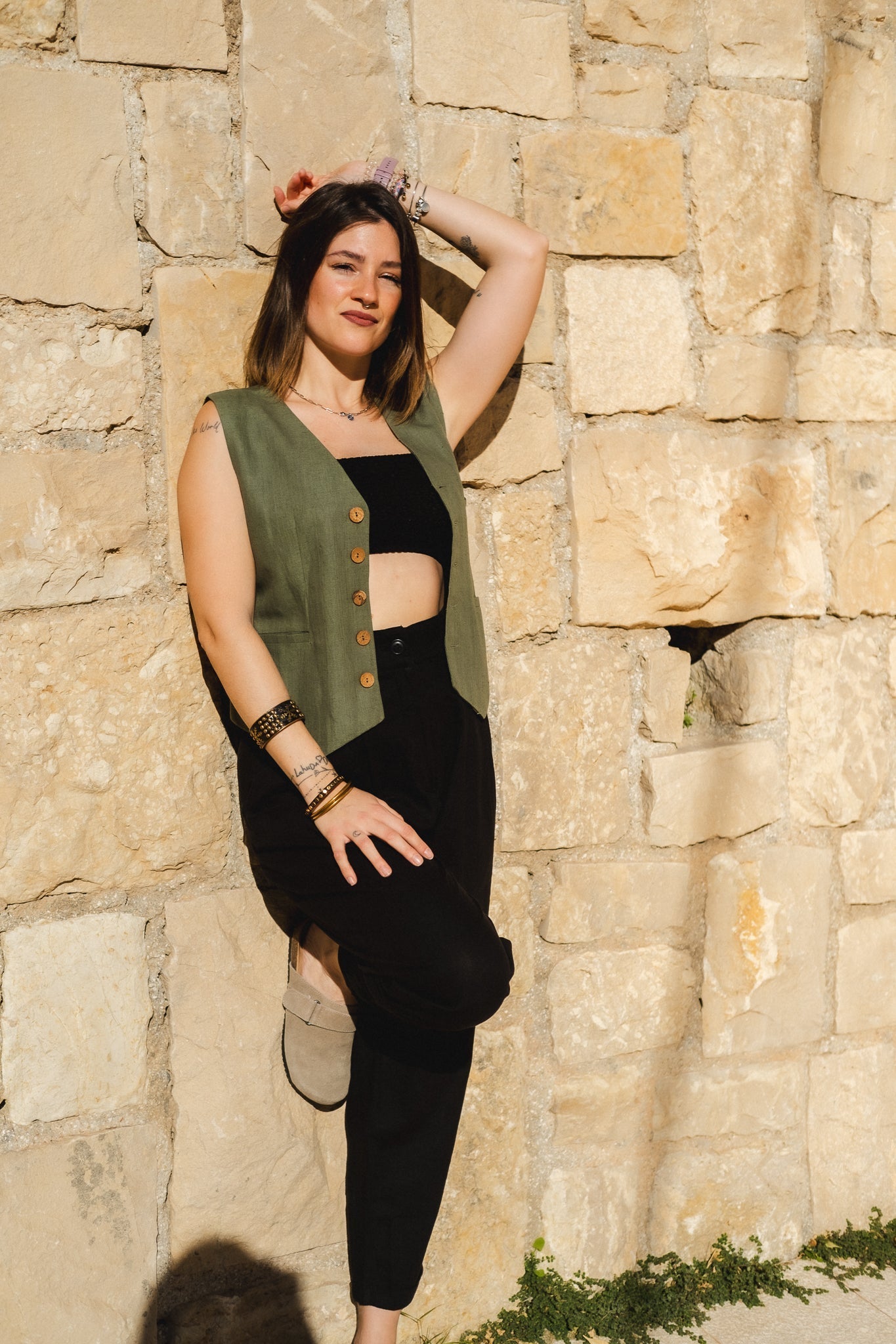 Our gorgeous V-Neck Cotton Linen Blend Waistcoat, your newest fashion statement piece! Pair it with anything for any occasion & you will feel the chicest woman out there! Wear it closed for a smart 'put together' look or pop a crop top underneath and wear it open for a carefree look, whatever mood you're feeling we are here for it!