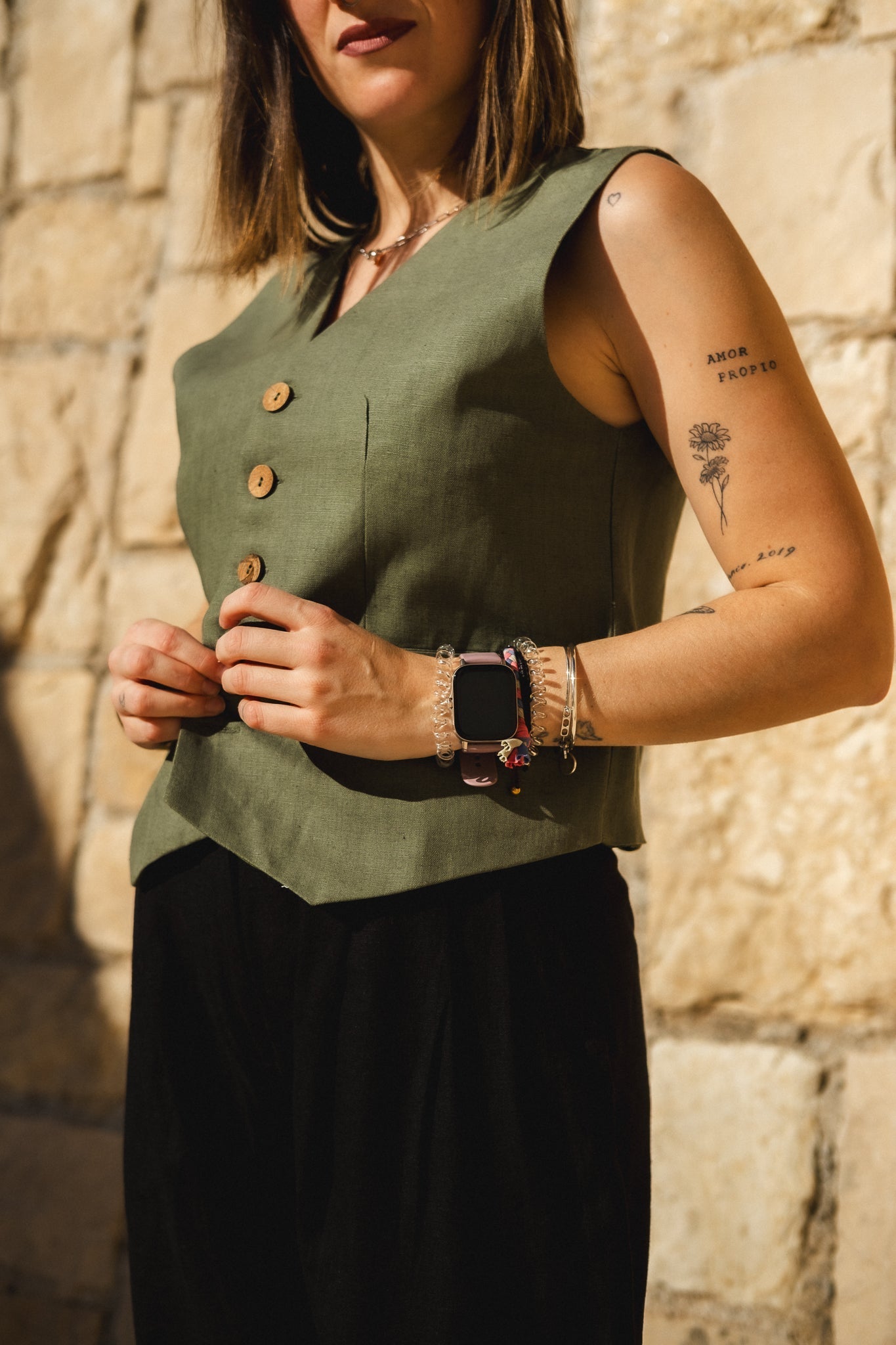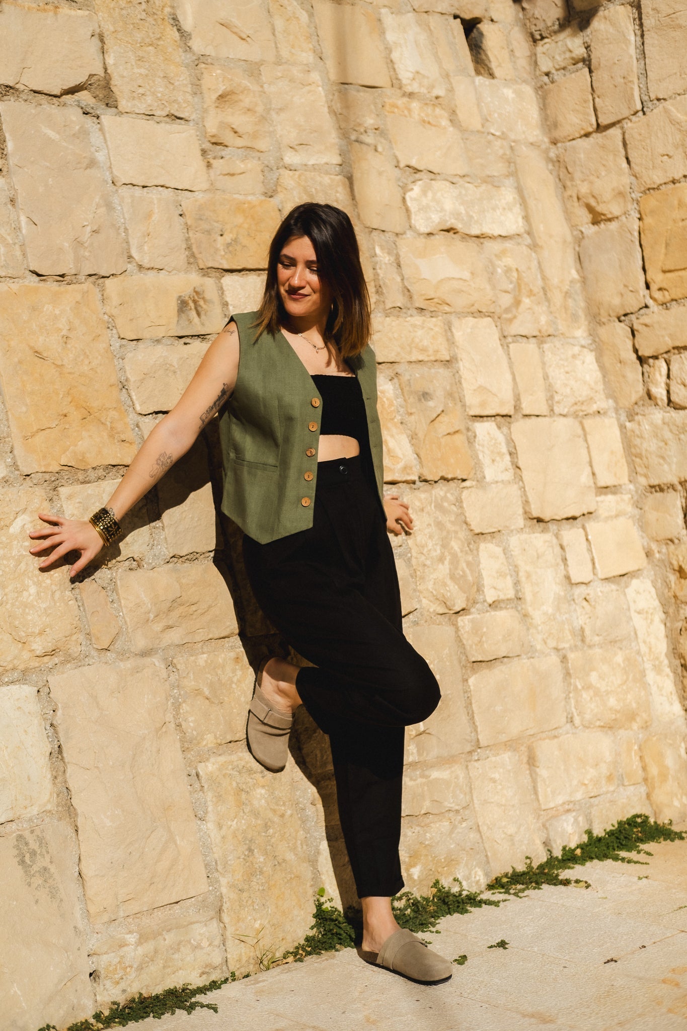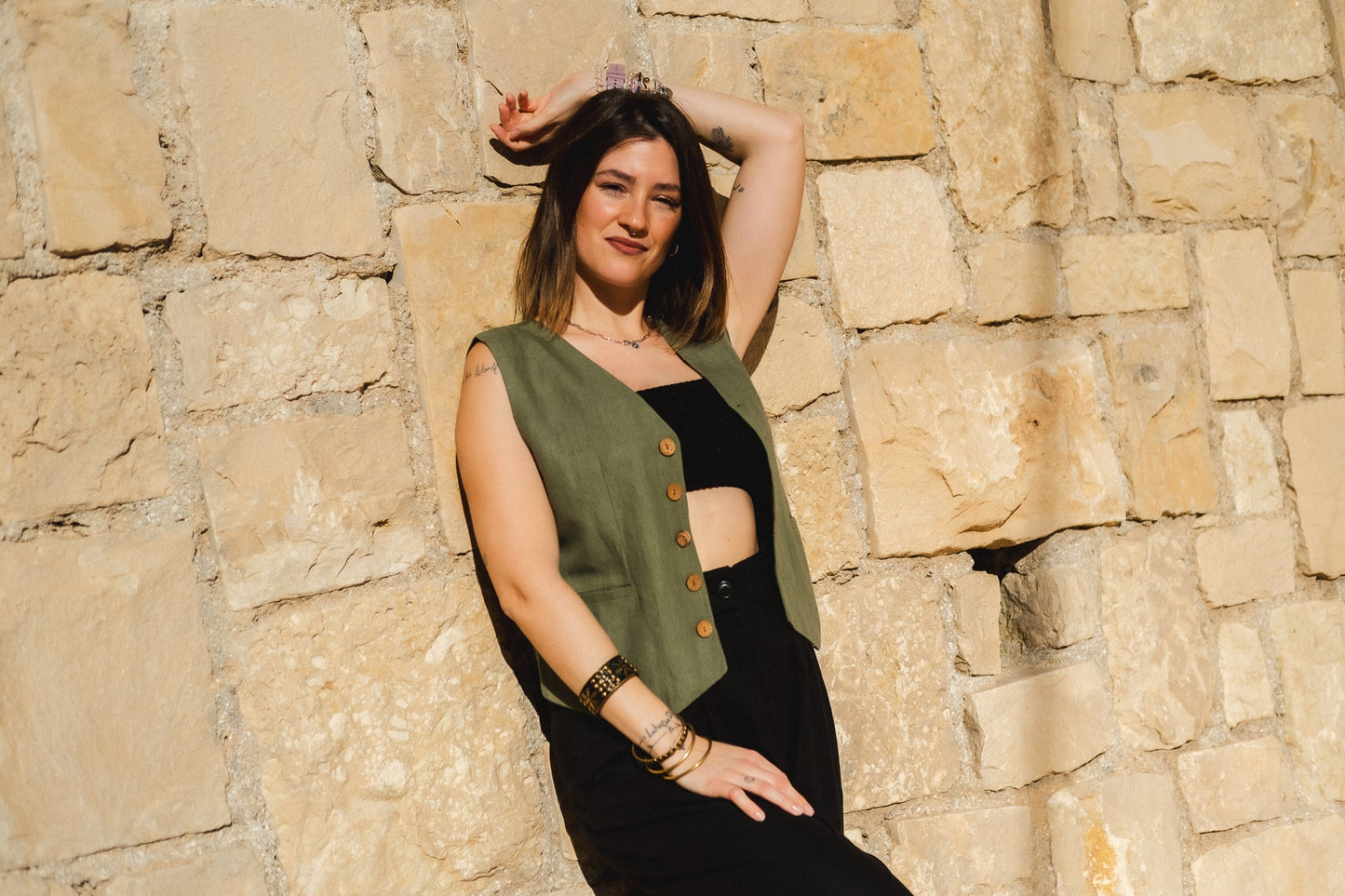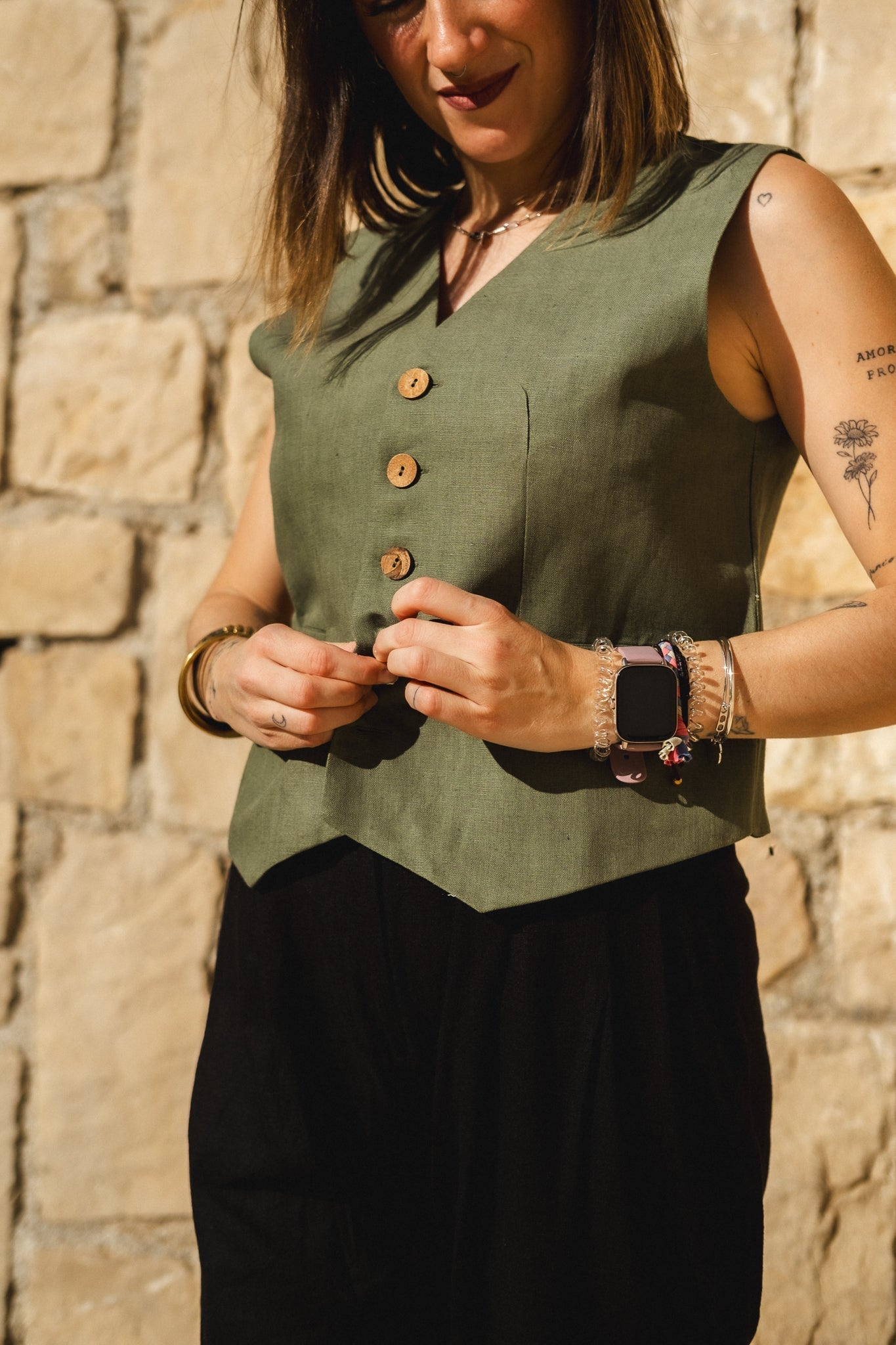 Our gorgeous V-Neck Cotton Linen Blend Waistcoat, your newest fashion statement piece! Pair it with anything for any occasion & you will feel the chicest woman out there! Wear it closed for a smart 'put together' look or pop a crop top underneath and wear it open for a carefree look, whatever mood you're feeling we are here for it!