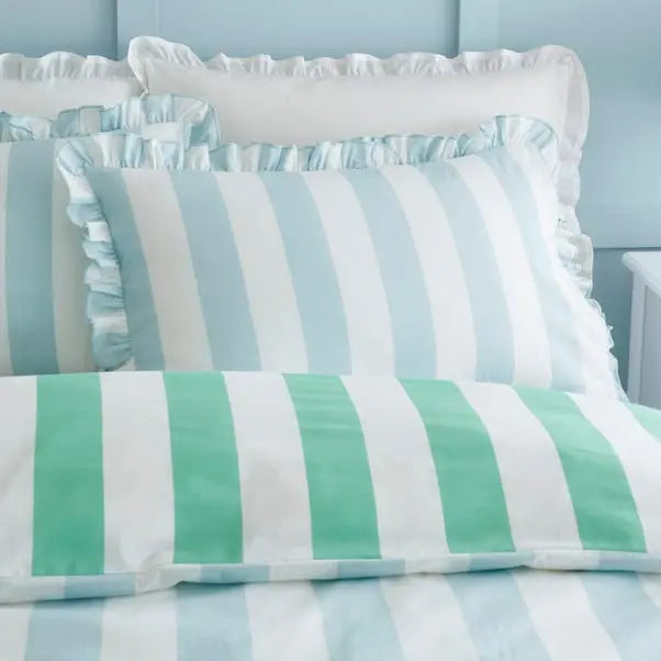 Green Emmy Frilled Stripe Duvet Cover & Pillowcase Set