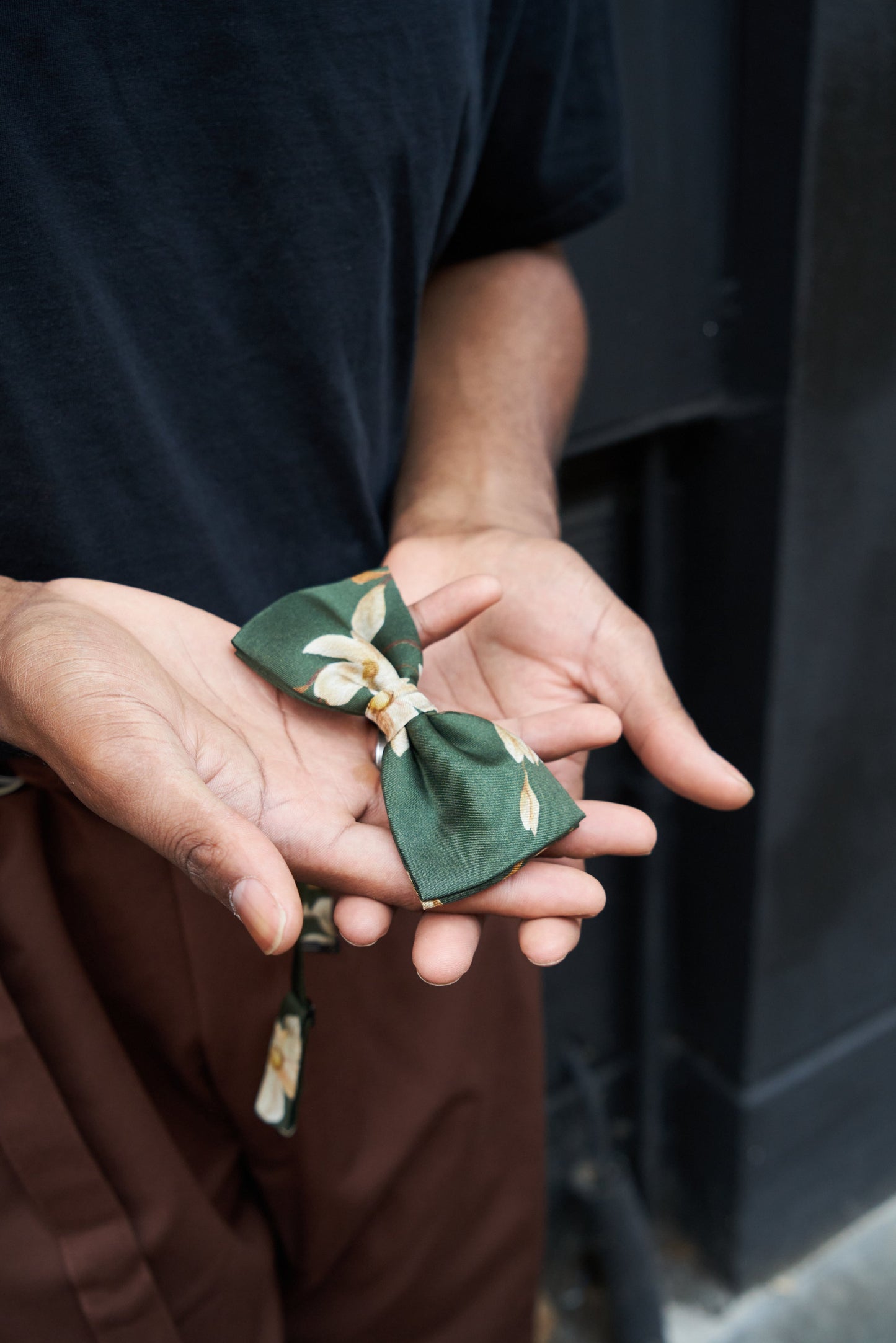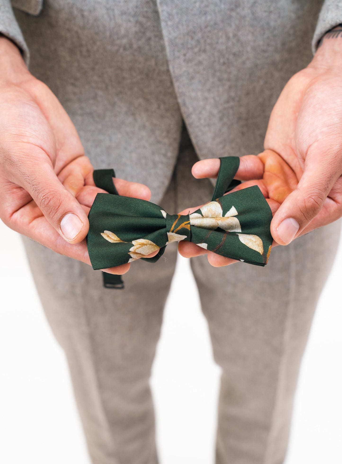 Green floral Silk Pocket Square and Bow tie in 'Forest' moth print