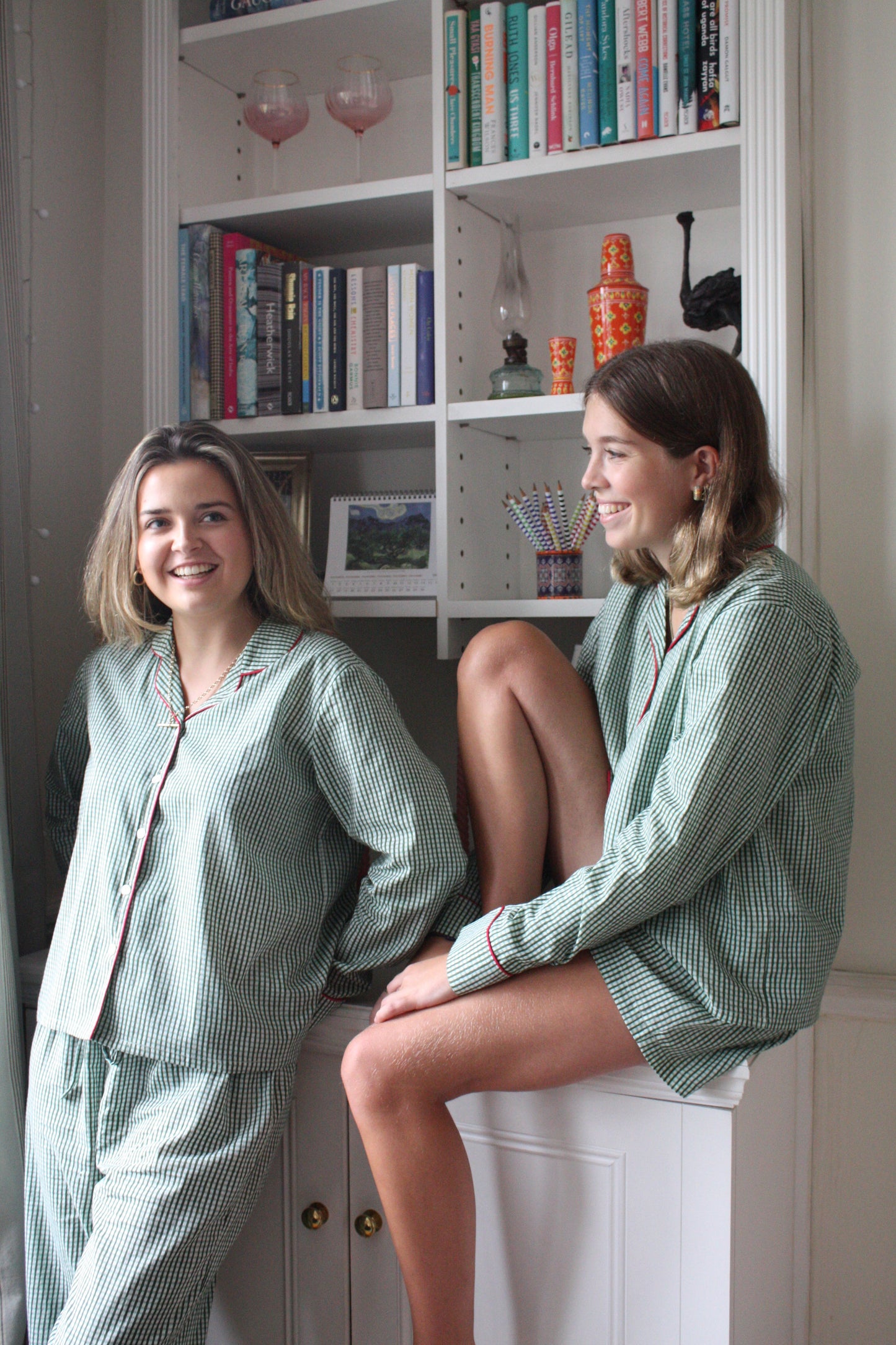 We all love a bit of gingham, but have you seen hand printed gingham before? Our two-tone green gingham design with its contrast scarlet piping might just be our favourite yet! All our pyjamas are handmade by artisans in Jaipur and come in a matching pyjama bag. Their oversized, boxy fit and supersoft cotton are perfect for cosy nights in. The fabric is hand printed so please allow for discrepancies in designs as each set is unique.