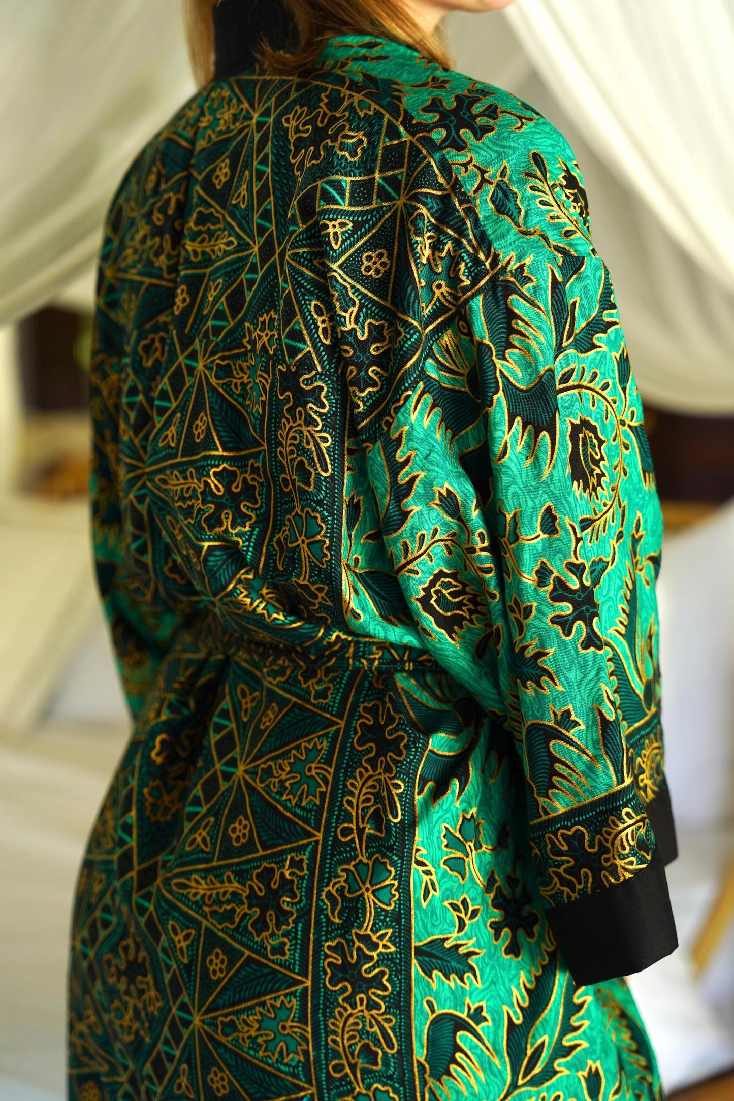 To prolong the life of the item please hand wash only. These kimonos iron easily too at medium heat but inside out. Always keep clothing away from fires.