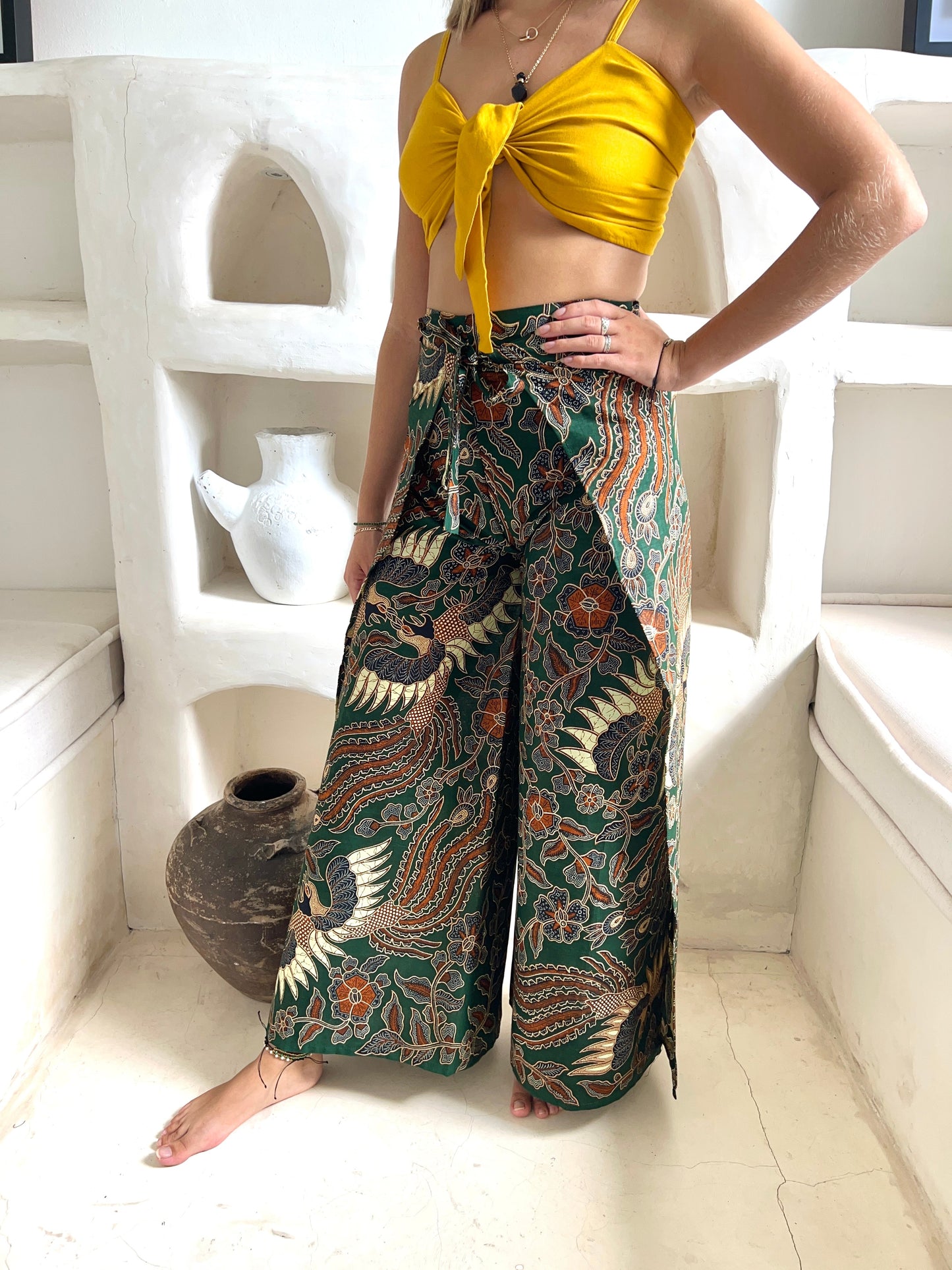 Green Oriental Batik Wrap Around Trousers