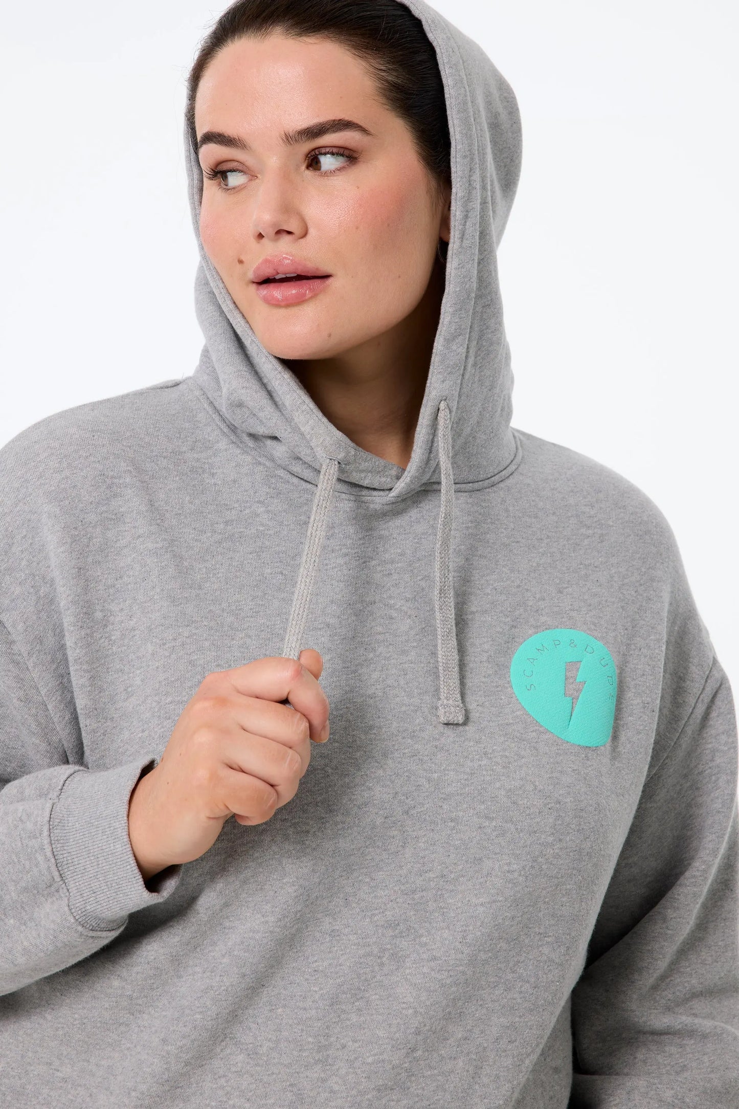 This grey marl longline hoodie is your go-to for easy comfort and playful style. Featuring a turquoise printed bolt on the front and a cheerful turquoise smiley face print on the back, it’s perfect for pairing with jeans or leggings whether you’re heading to the park or out for lunch with friends.