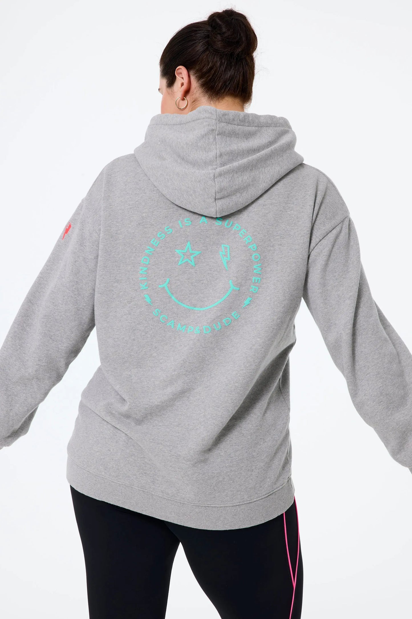 Grey Marl Longline Hoodie with Turquoise Smiley Face – Cosy, Fun & Effortless Style