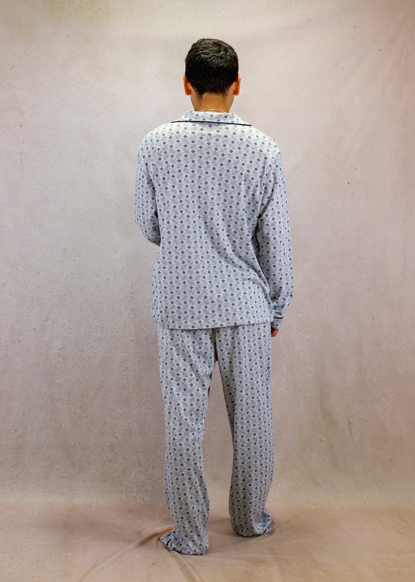 Grey squares Mens Pima Cotton Long Sleeve Pyjama Trouser Set