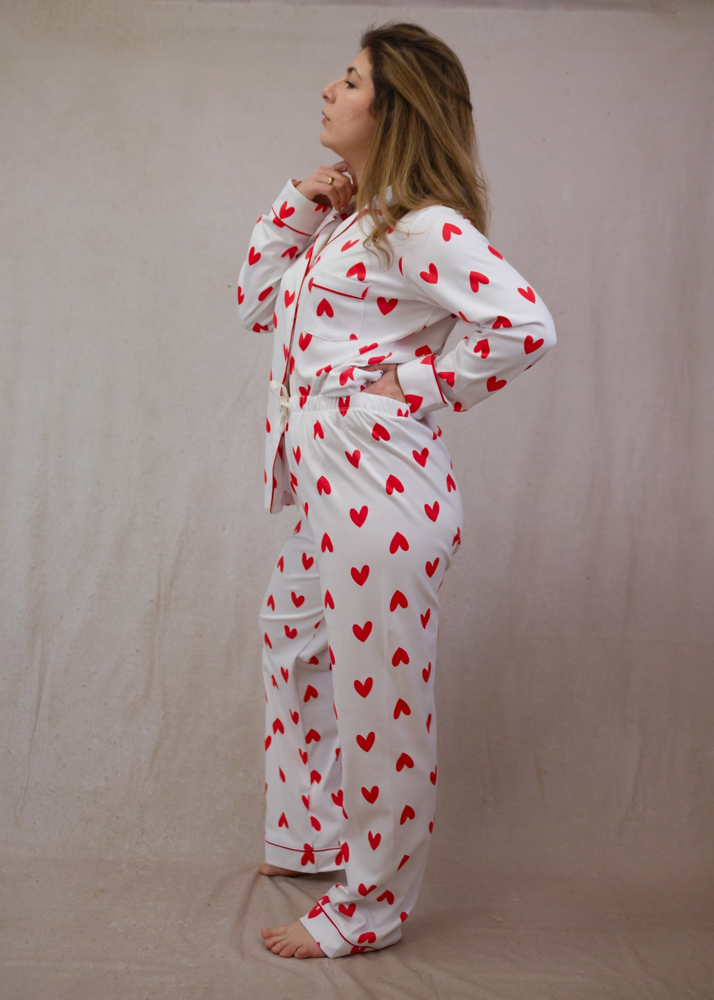 Hearts set Women's Pima Cotton Long Sleeve Pyjama Trouser Set