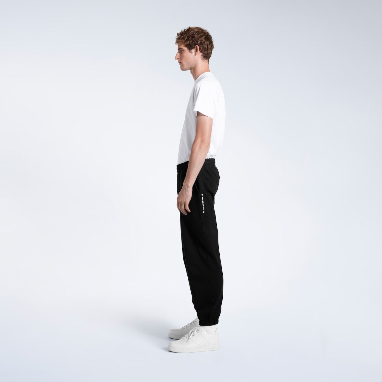 - Black joggers model: Height 6'2" (189 cm), wearing size M