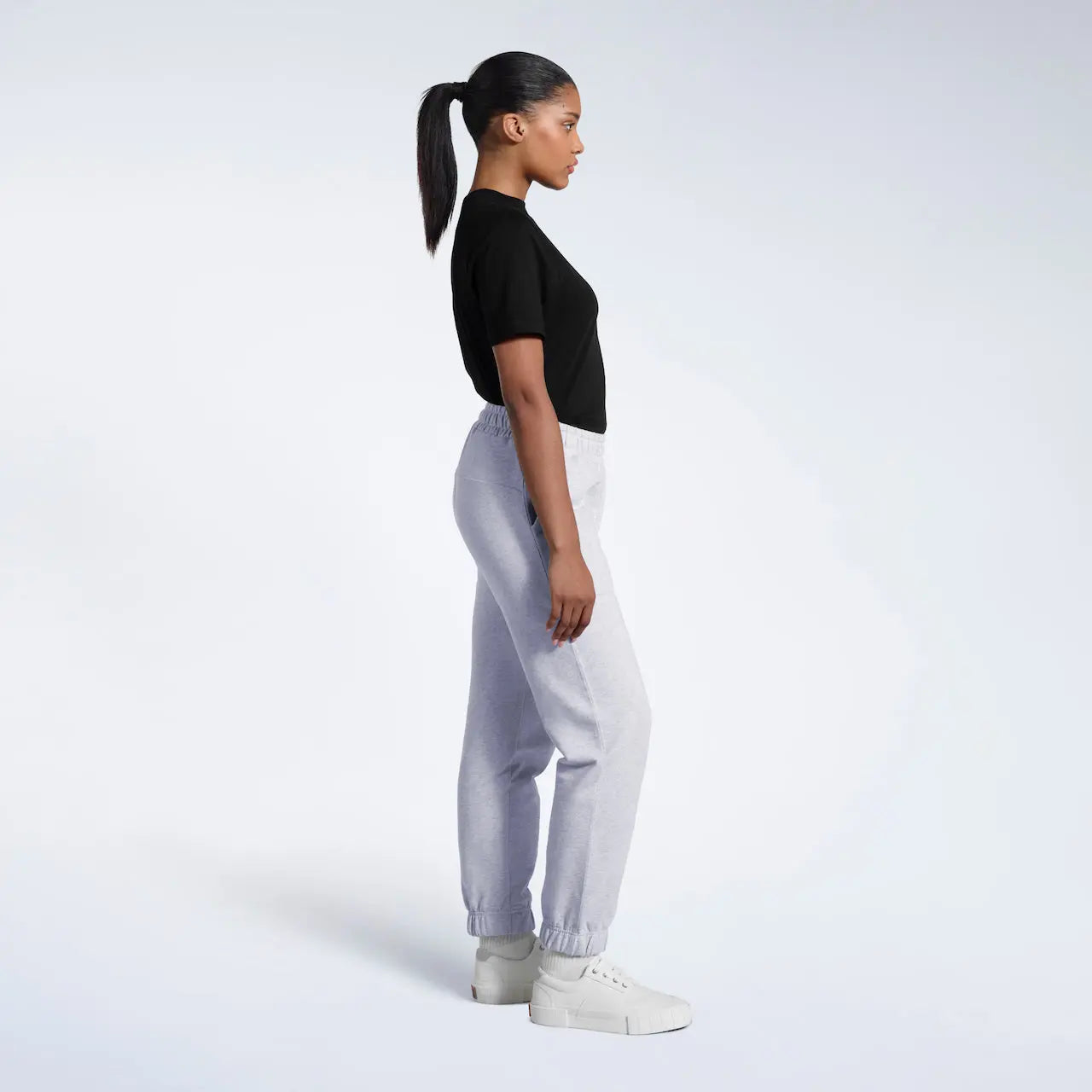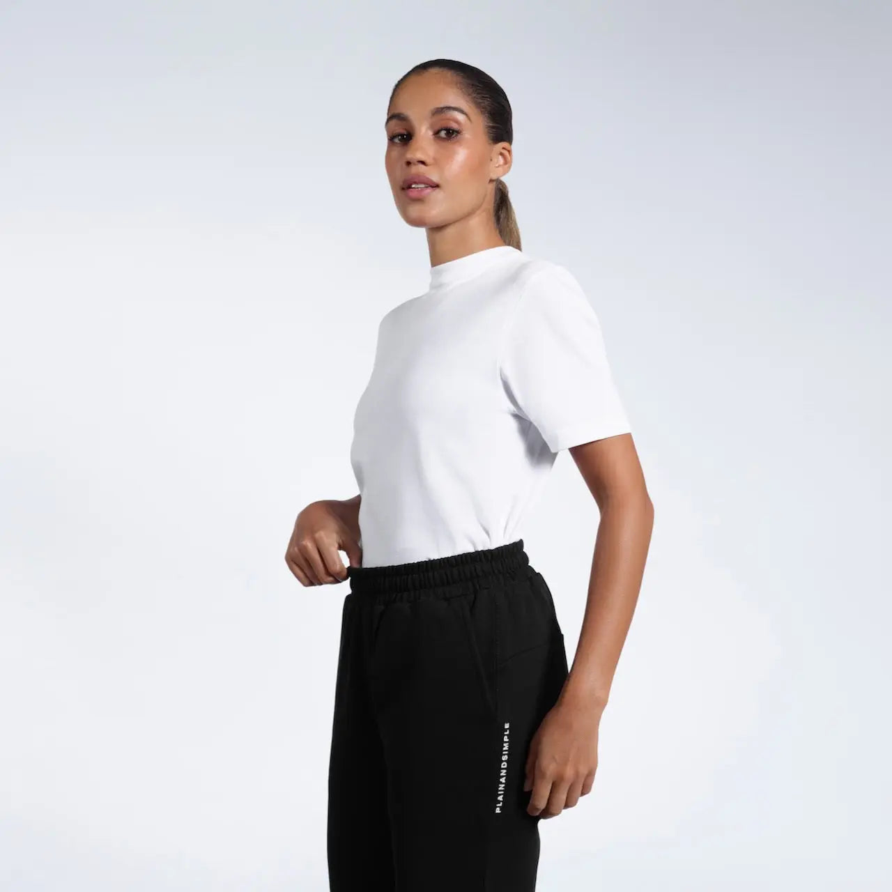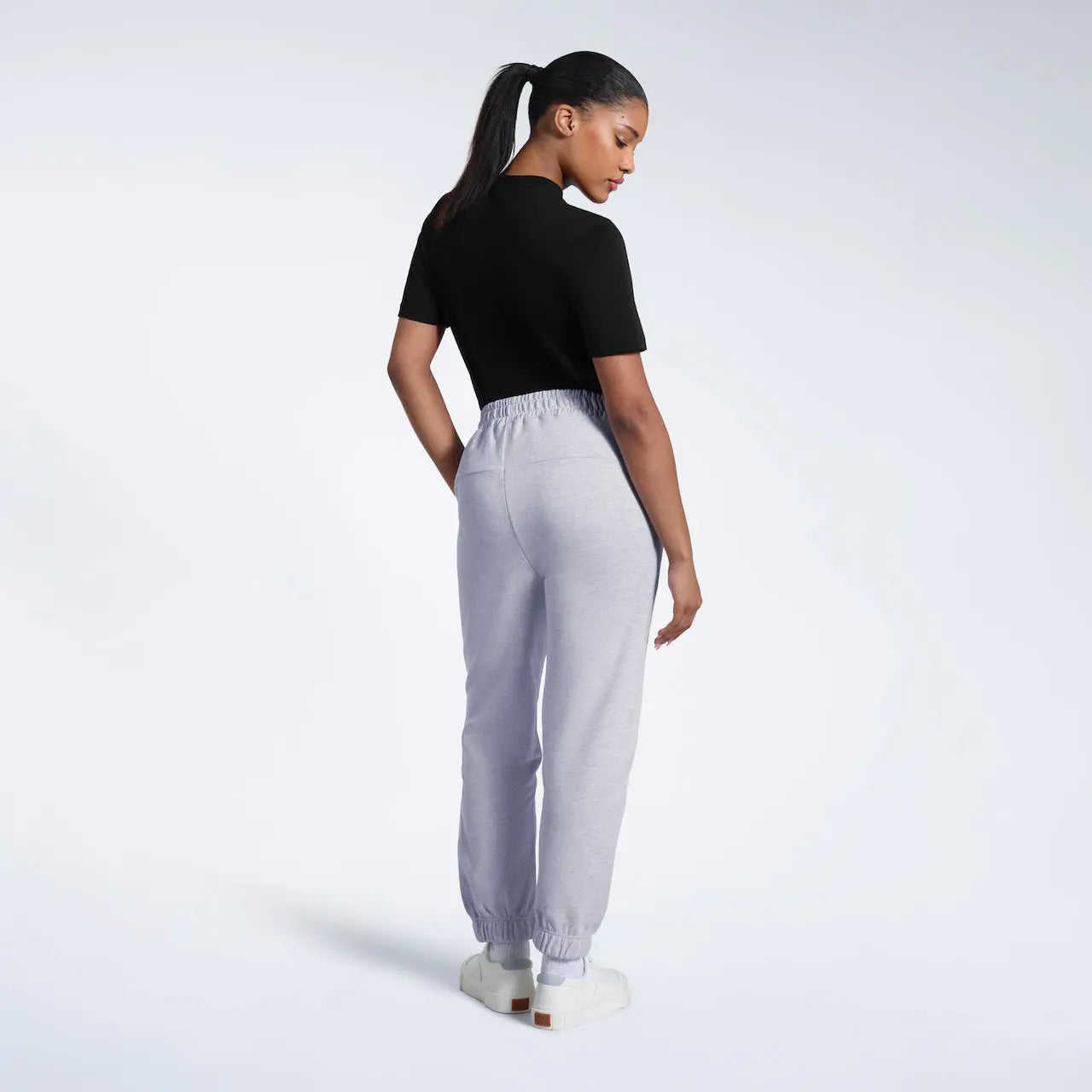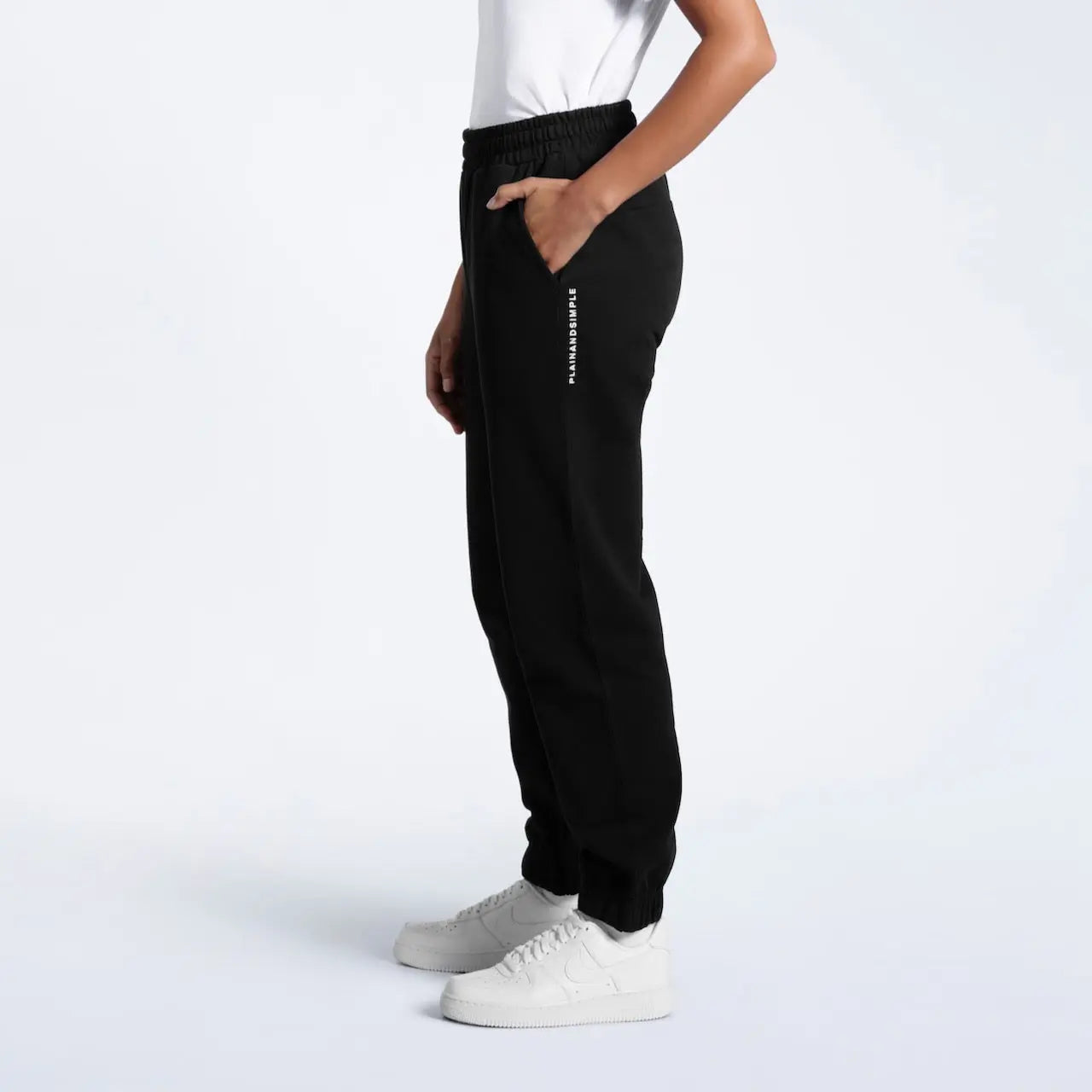 - Black joggers model: Height 5'6" (168 cm), wearing size S
