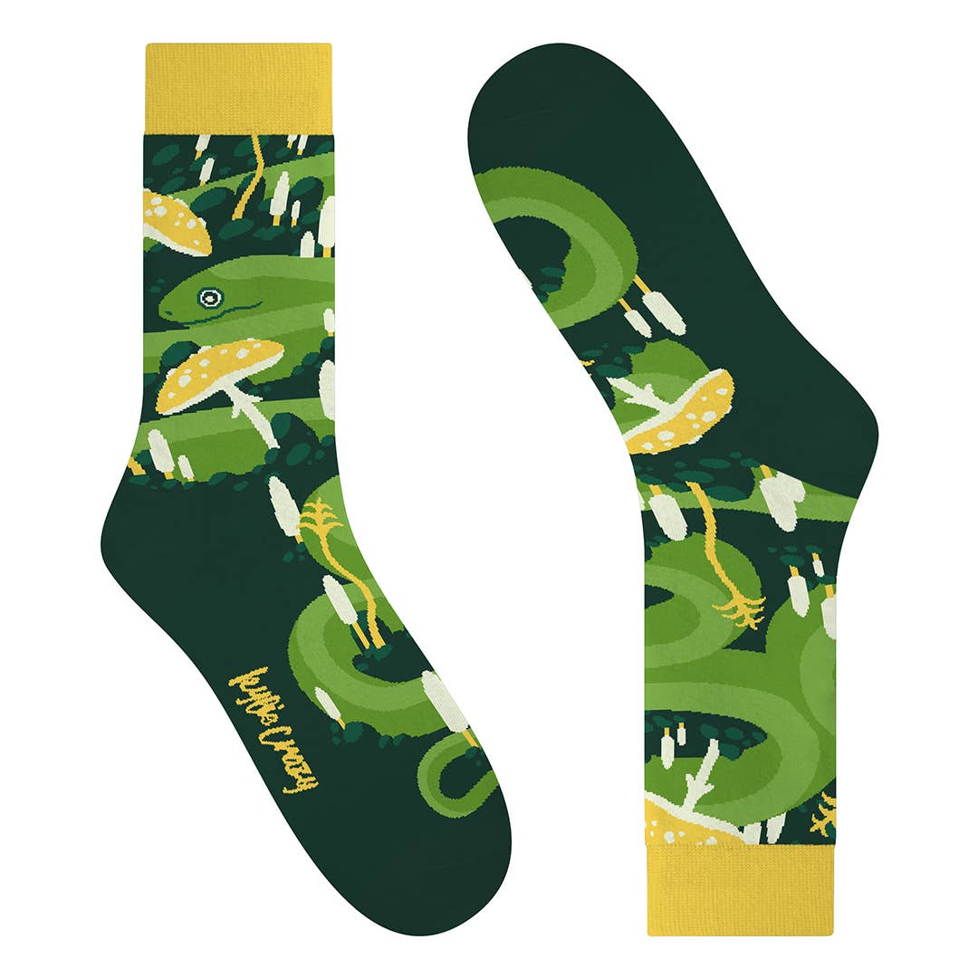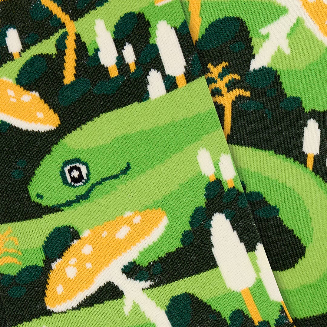 Slither into something more stylish with these jungle jammers! Packed with leafy greens, sly snakes, and cheeky mushrooms, this pair is perfect for anyone who prefers their fashion a little wild and wonderfully weird.