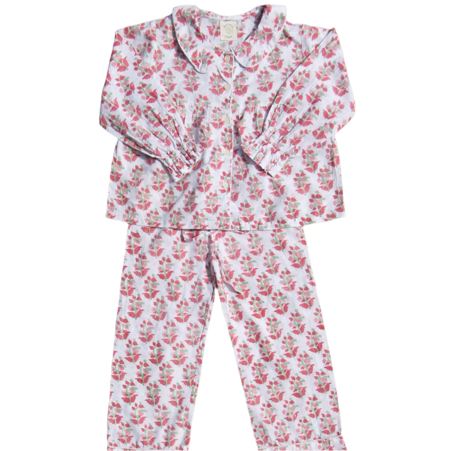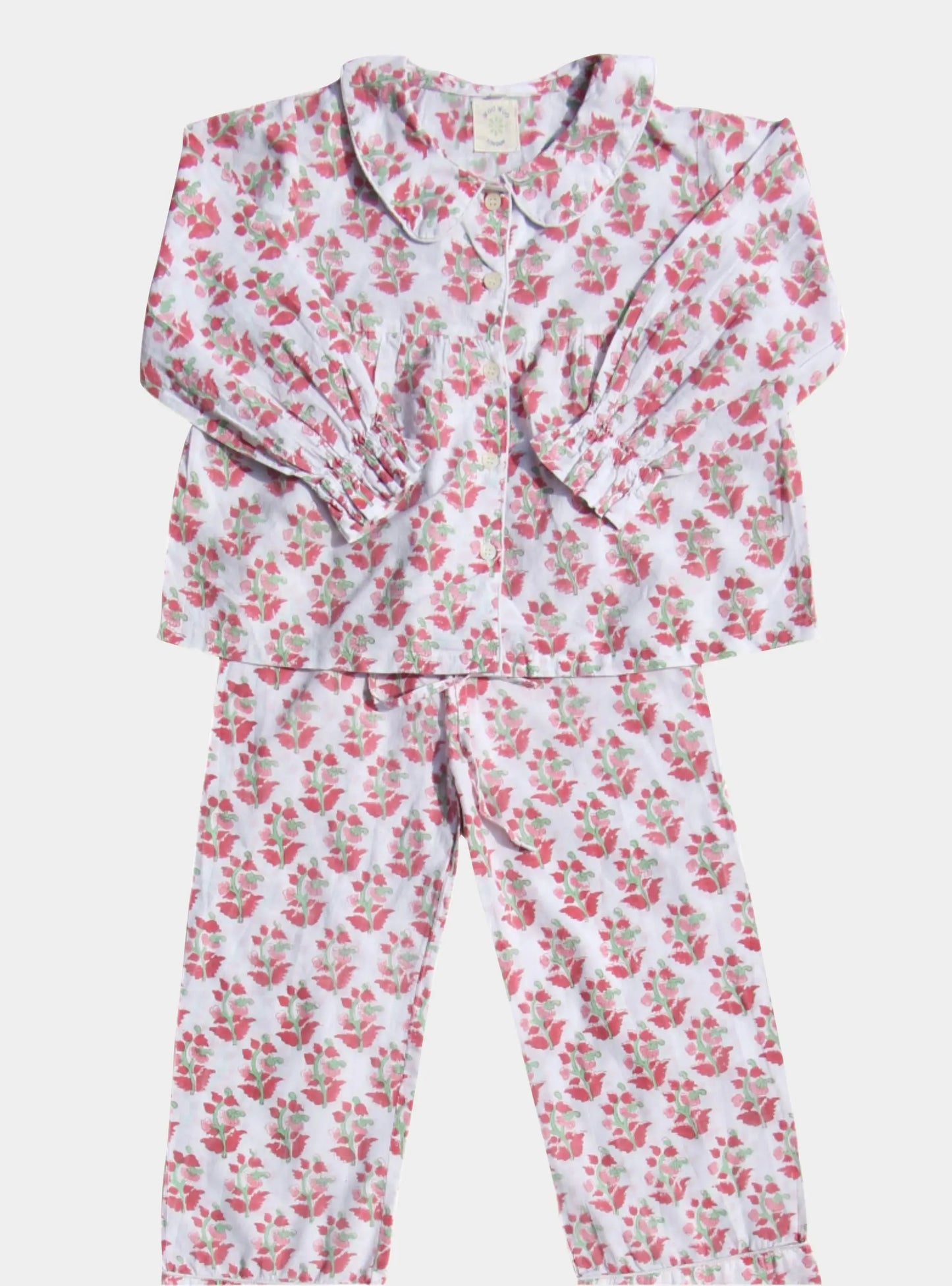 Match with your little one! Our gorgeous Inca Red Kids Pyjamas are hand block printed with a charming red floral design to brighten up even the chilliest winter nights. Made from pure, breathable cotton, these pyjamas are as soft and comfortable as they are beautiful — perfect for bedtime stories, lazy mornings, and everything in between.