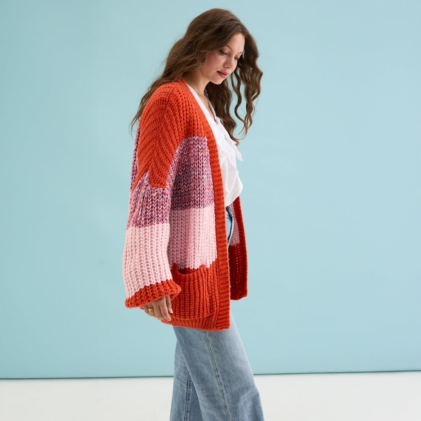 Janie Oversized Chunky Stripe Cardigan - Orange