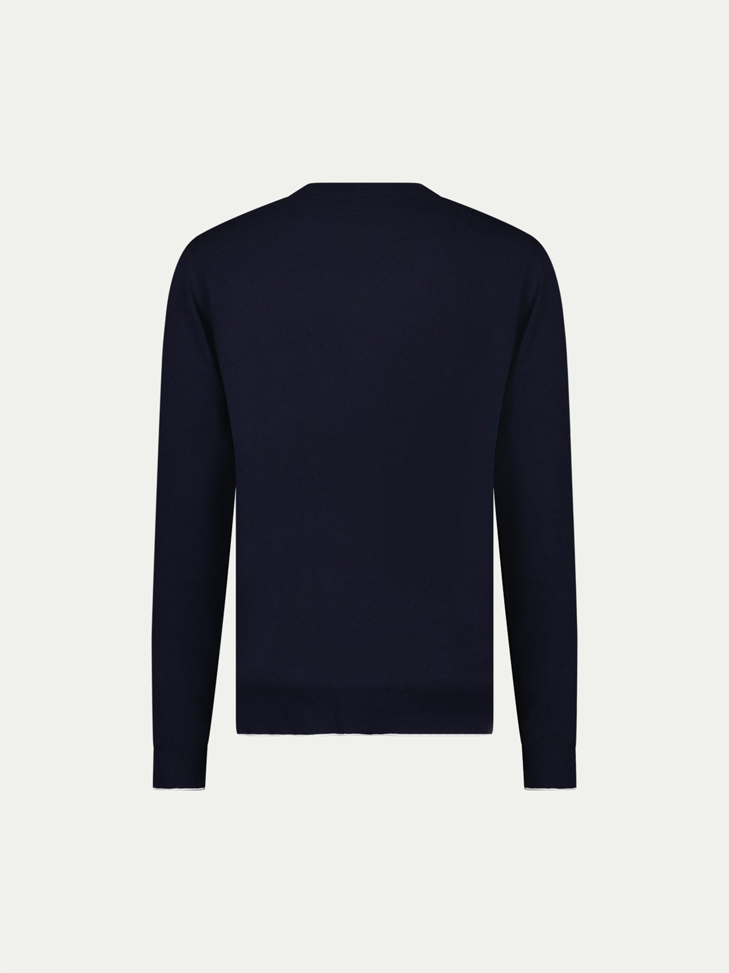 This isn’t your everyday crew. Knitted in a fine jersey stitch and finished with contrast tipping at the collar, hem, and cuffs, it’s a refined take on a classic silhouette. Light enough to layer, confident enough to wear solo. Try it with pleated trousers and leather loafers or under a tailored coat on cooler days.