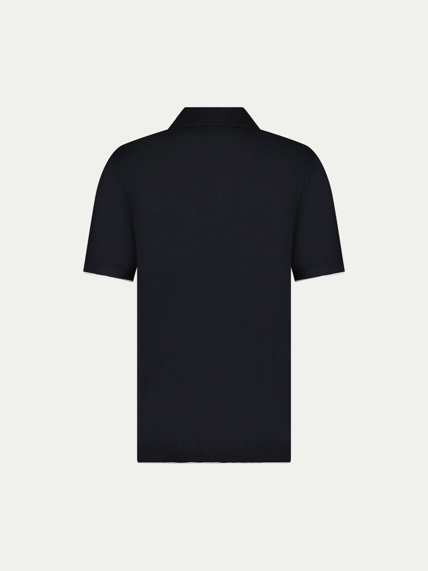 Spun in a fine jersey stitch with subtle contrast tipping, this short sleeve knit polo leans into quiet design. The collar is clean, the fit refined, and the buttons are understated. It’s smart enough for gallery openings, soft enough for late café mornings, and easy enough to wear on repeat. Layer it under a blazer or let it hold its own with pressed trousers and loafers.