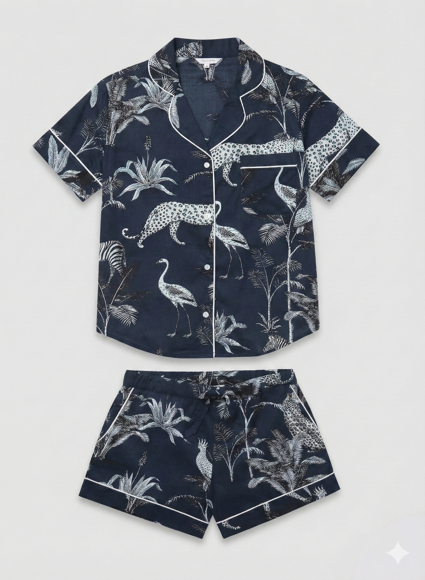 Navy Jungle Organic Cotton Pyjama Short Set – Bring the Wild to Your Wardrobe with a Bold Jungle Print