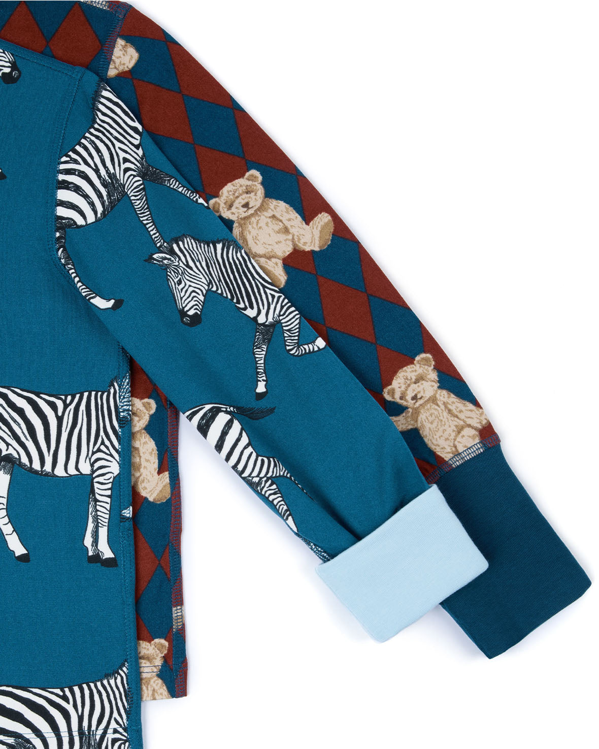 Kids Two Pack Argyle Bear / Zebra Print Long Pyjama Set