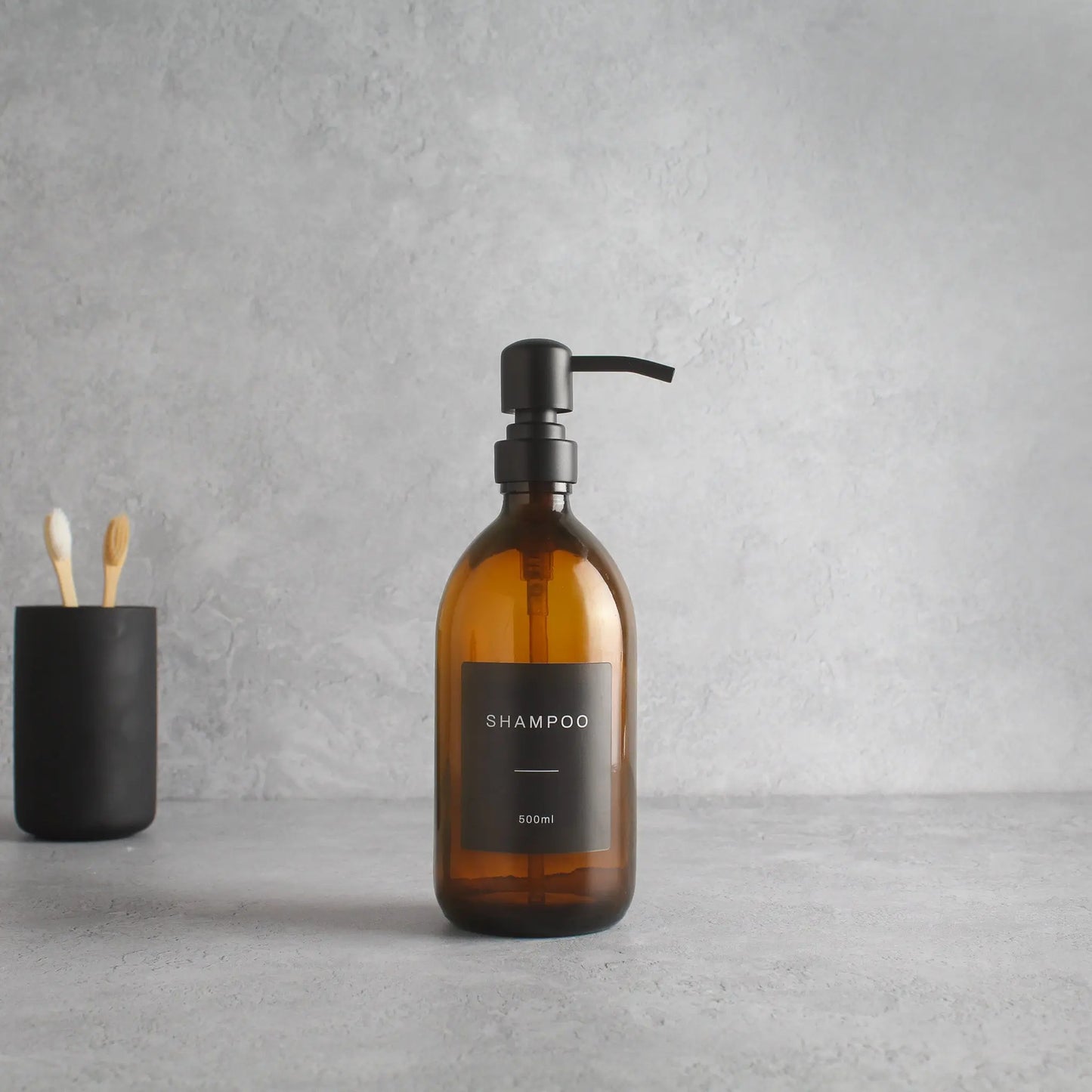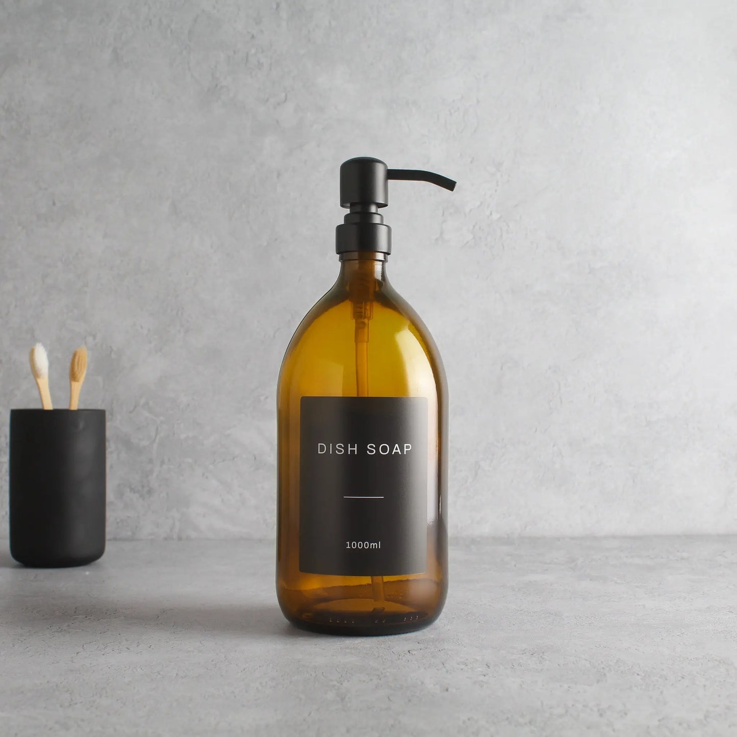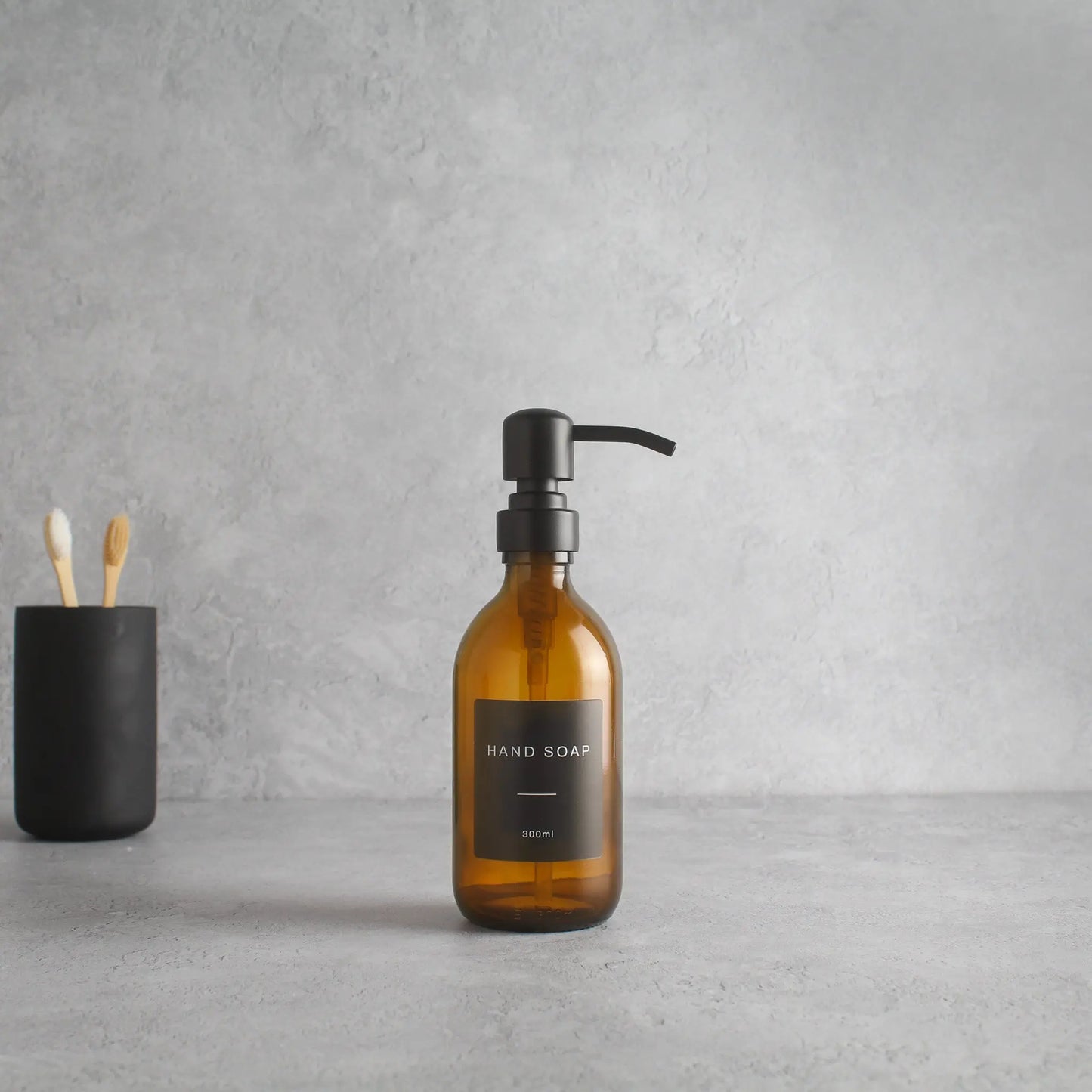 Offering a premium labelling solution, these simple yet gorgeous amber glass bottles will uplift your home whilst also beautifully displaying your chosen product. The matte black pump dispenser perfectly compliments the sleek black label, working superbly with amber glass. The pump dispenser is unscrewed allowing for easy refill with your chosen product. This allows you to reduce household plastic waste and will help you move over to an eco-friendly environment. A permanent labelling solution allowing you to add a modern look to your home.