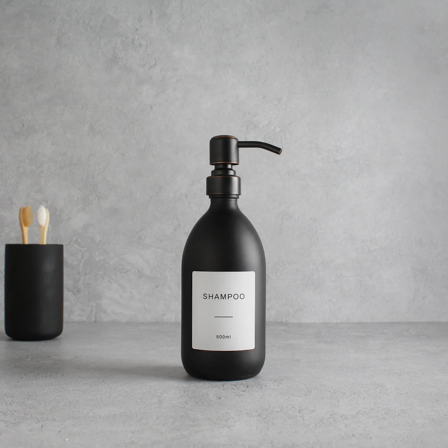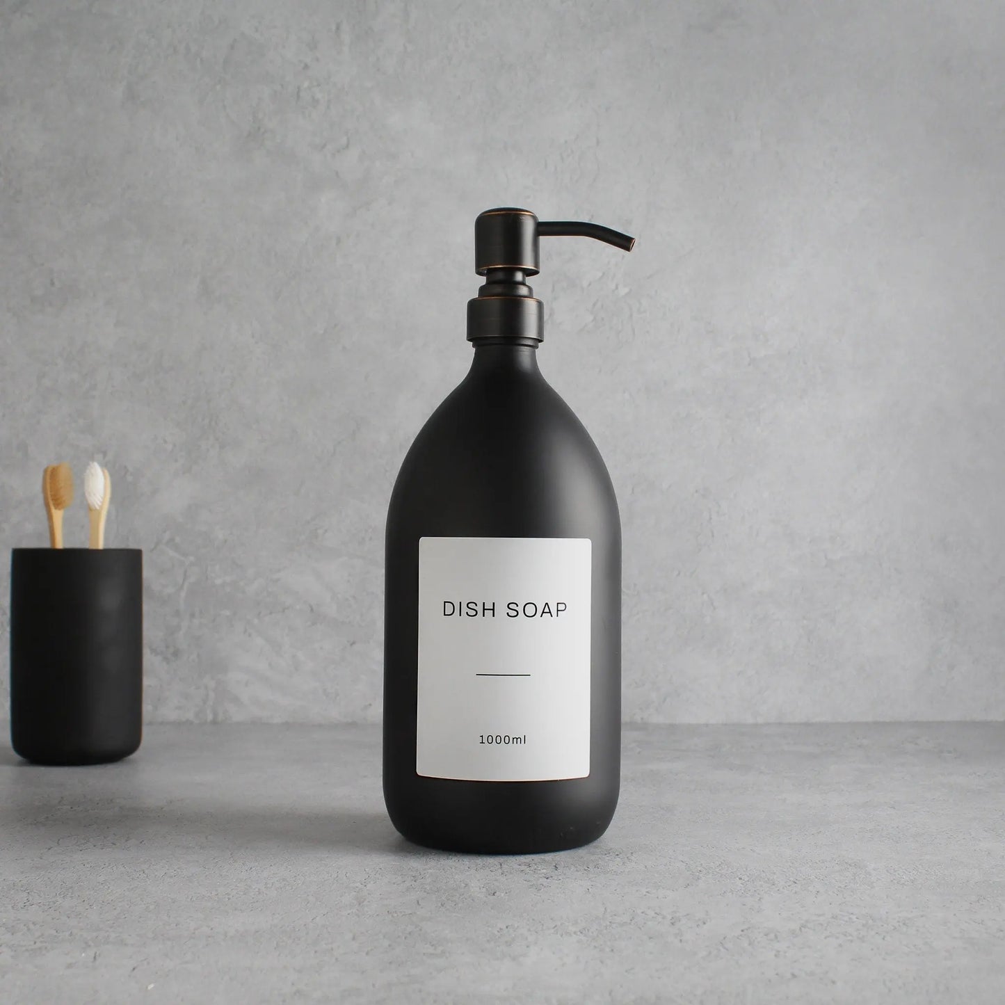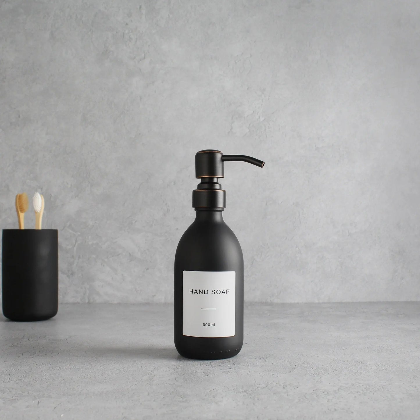 Labelled Matte Black Glass Dispenser Bottle With Black/Copper Pump