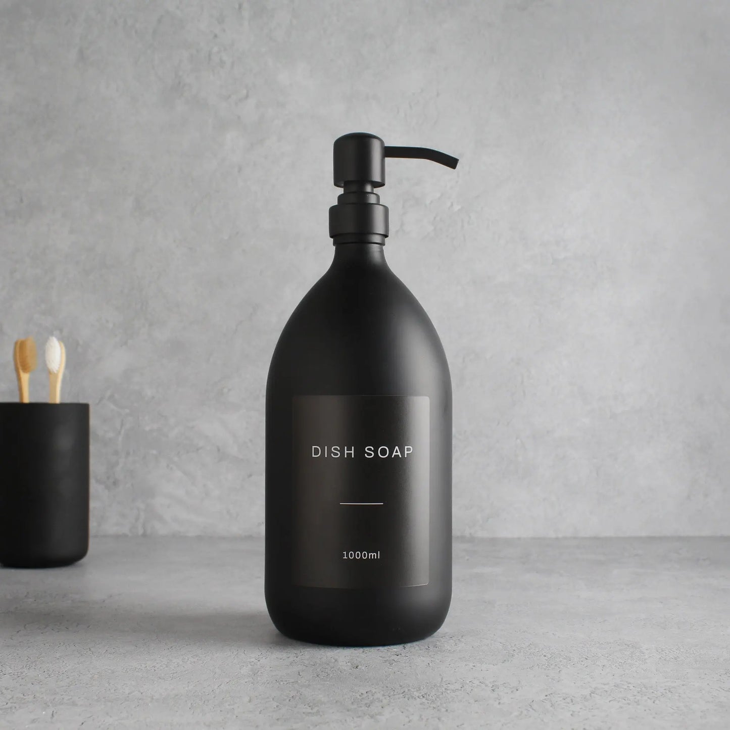 Labelled Matte Black Glass Dispenser Bottle With Matte Black Pump