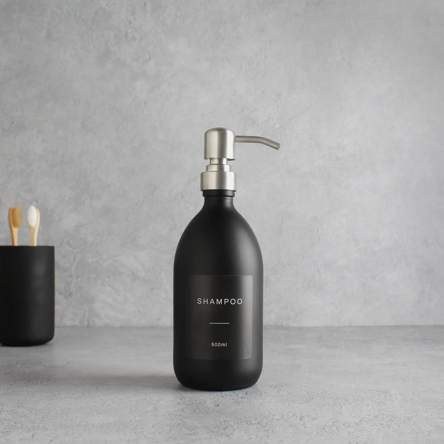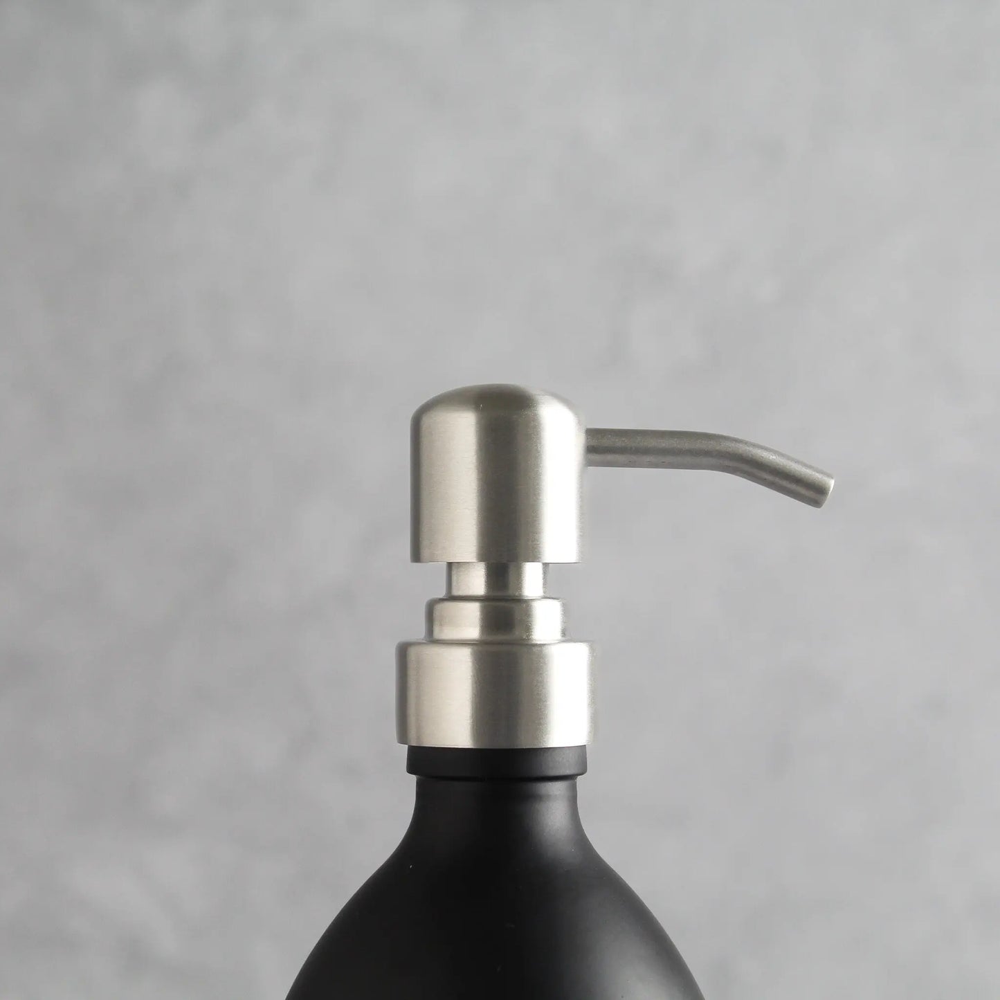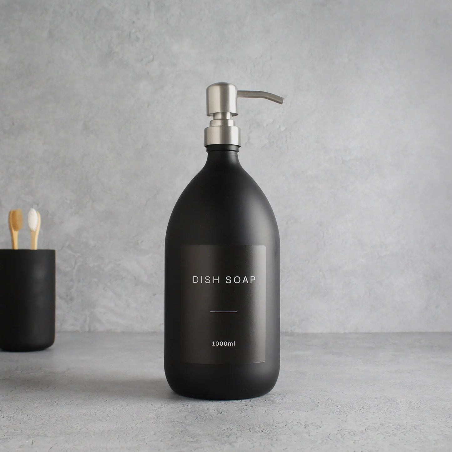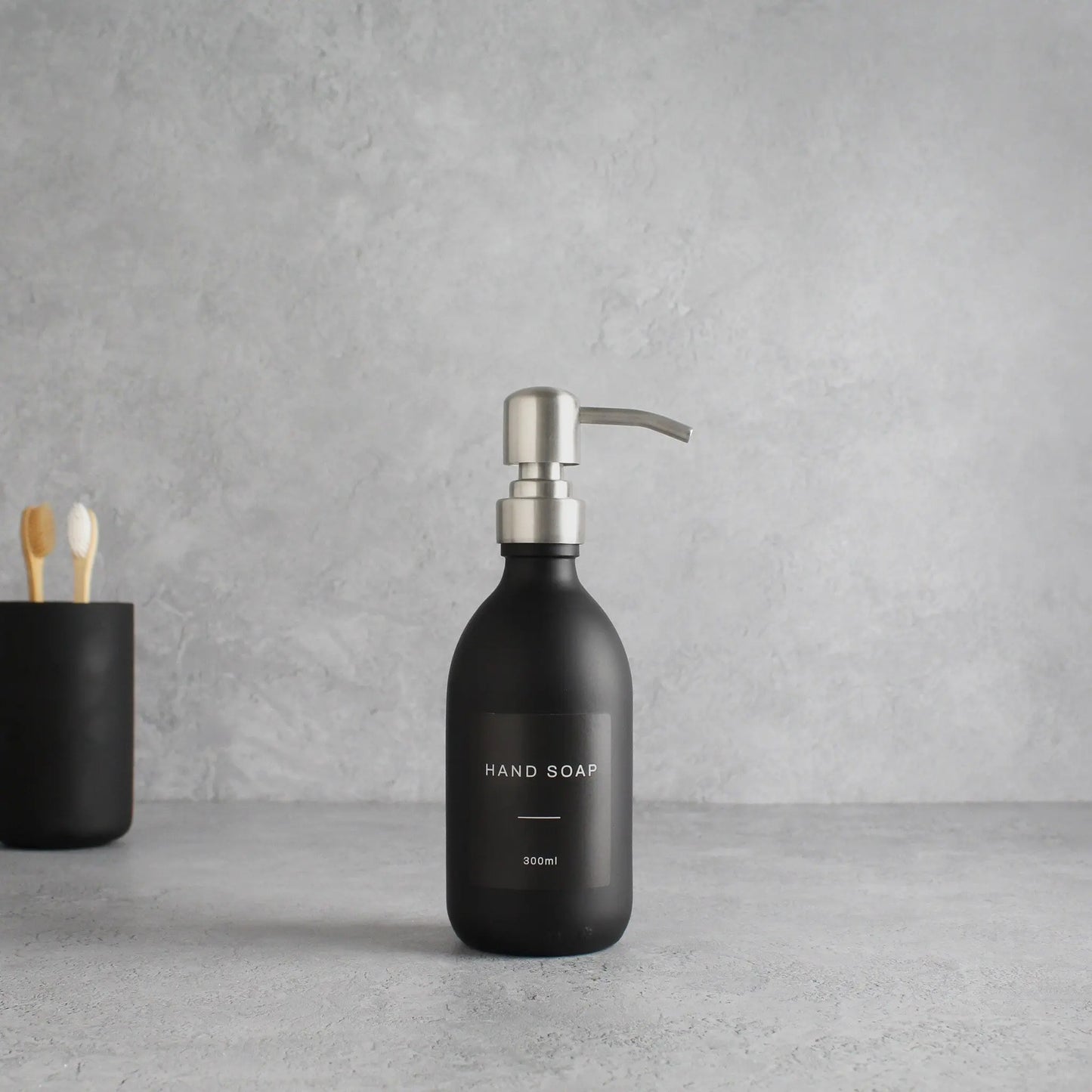 Labelled Matte Black Glass Dispenser Bottle With Silver Pump