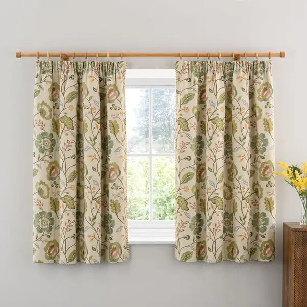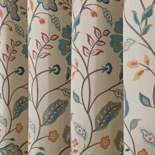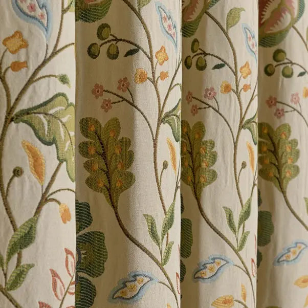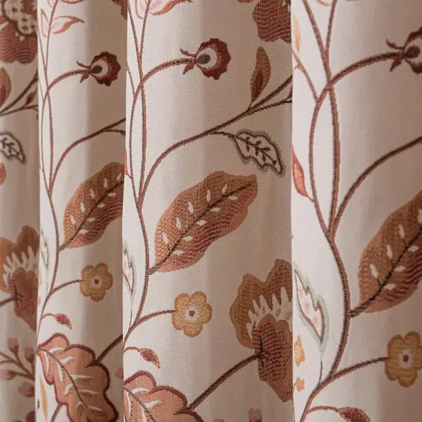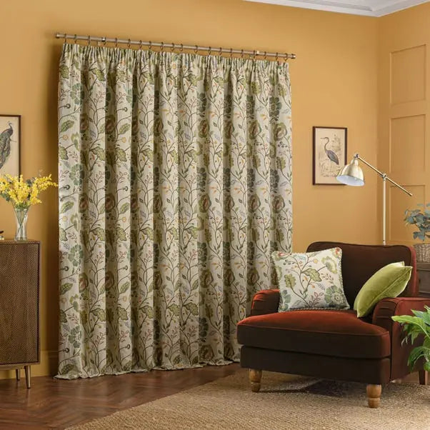 Part of our coveted Luxury Collection, the Lampasso Pencil Pleat Curtains blend timeless beauty with thoughtful craftsmanship. Adorned with an intricate oak leaf and floral pattern, these curtains are crafted from robust recycled materials and bring a sophisticated, cosy ambiance to any space. The rope braid detailing down the leading edge and weighted corners provide a premium finish and flawless drape.