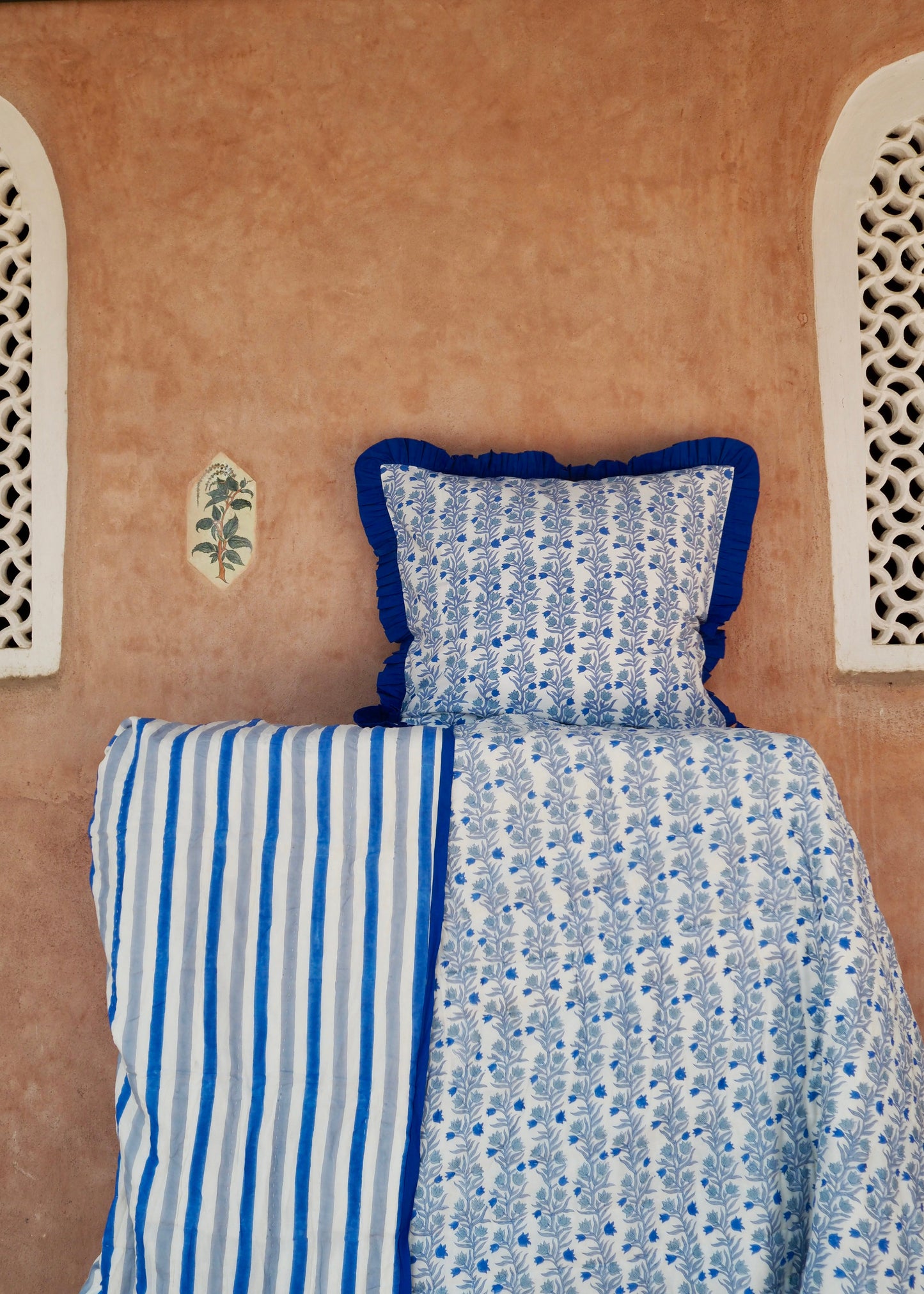 Regular price £45.50Add a touch of timeless elegance to your space with this beautifully handcrafted cushion cover. Measuring 65 x 65 cm, it features a stunning hand-block printed design, complemented by a solid-colour frill for an extra touch of charm.