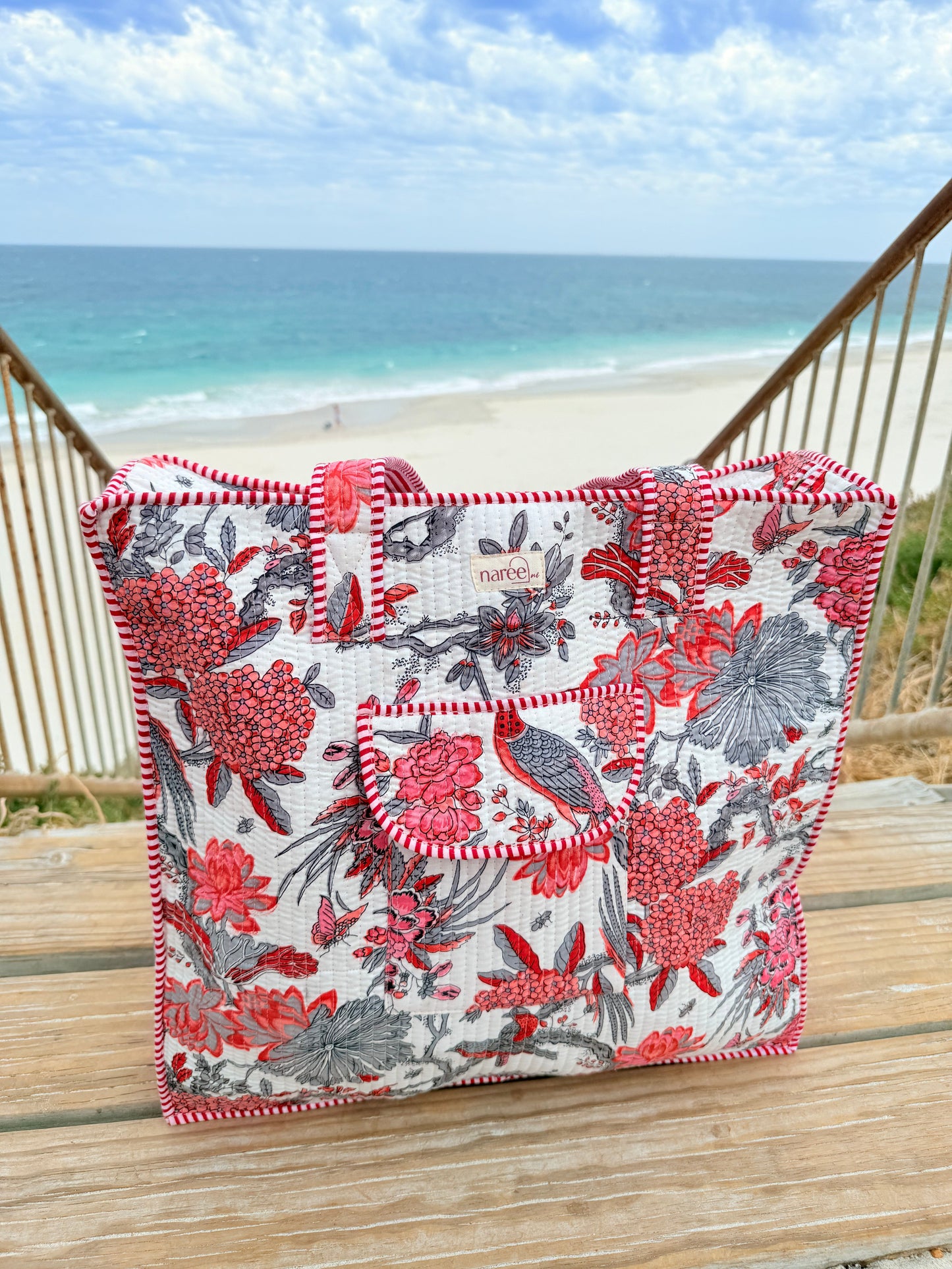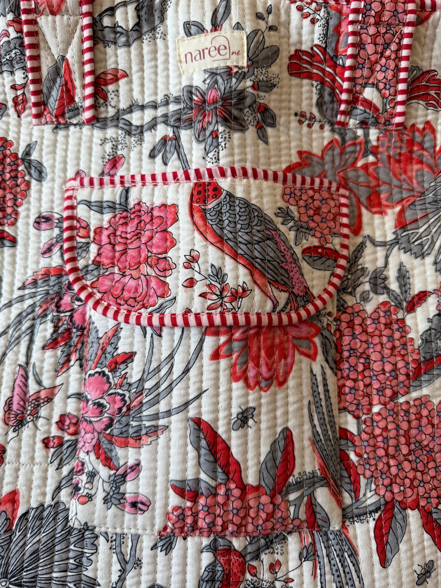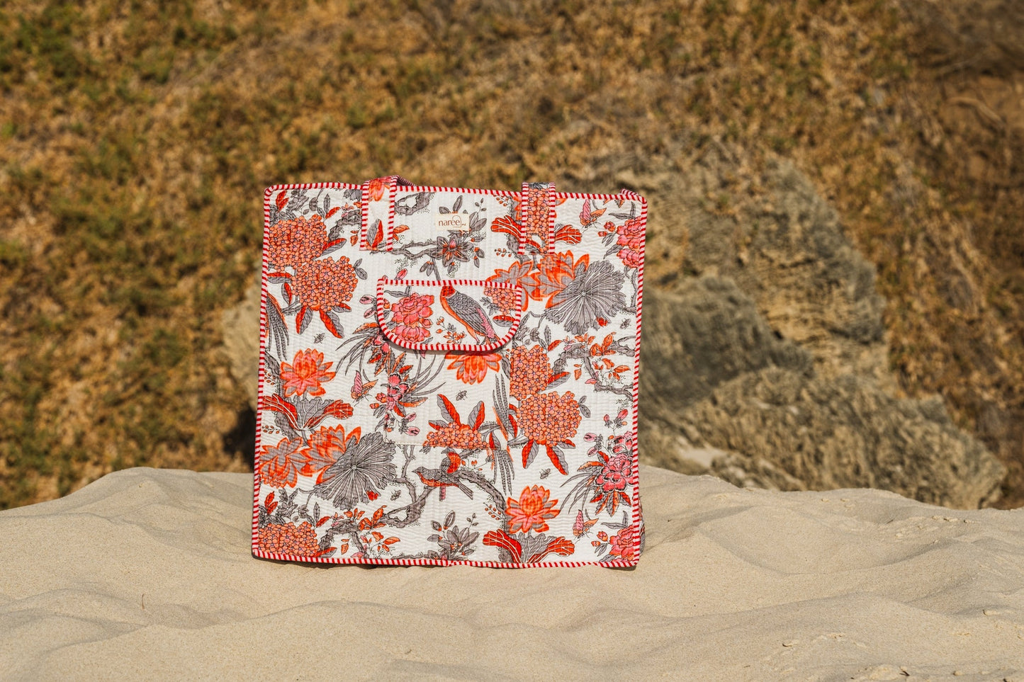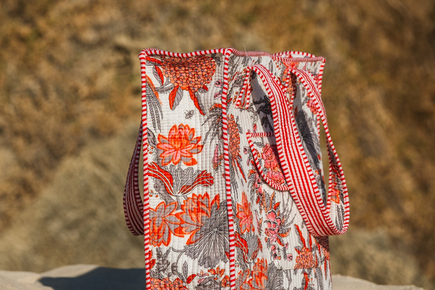 Handcrafted with traditional Indian block prints, this tote combines trendy design with everyday functionality, making it perfect for any occasion. With a spacious interior and sturdy quilted structure, it’s your go-to for all your needs.