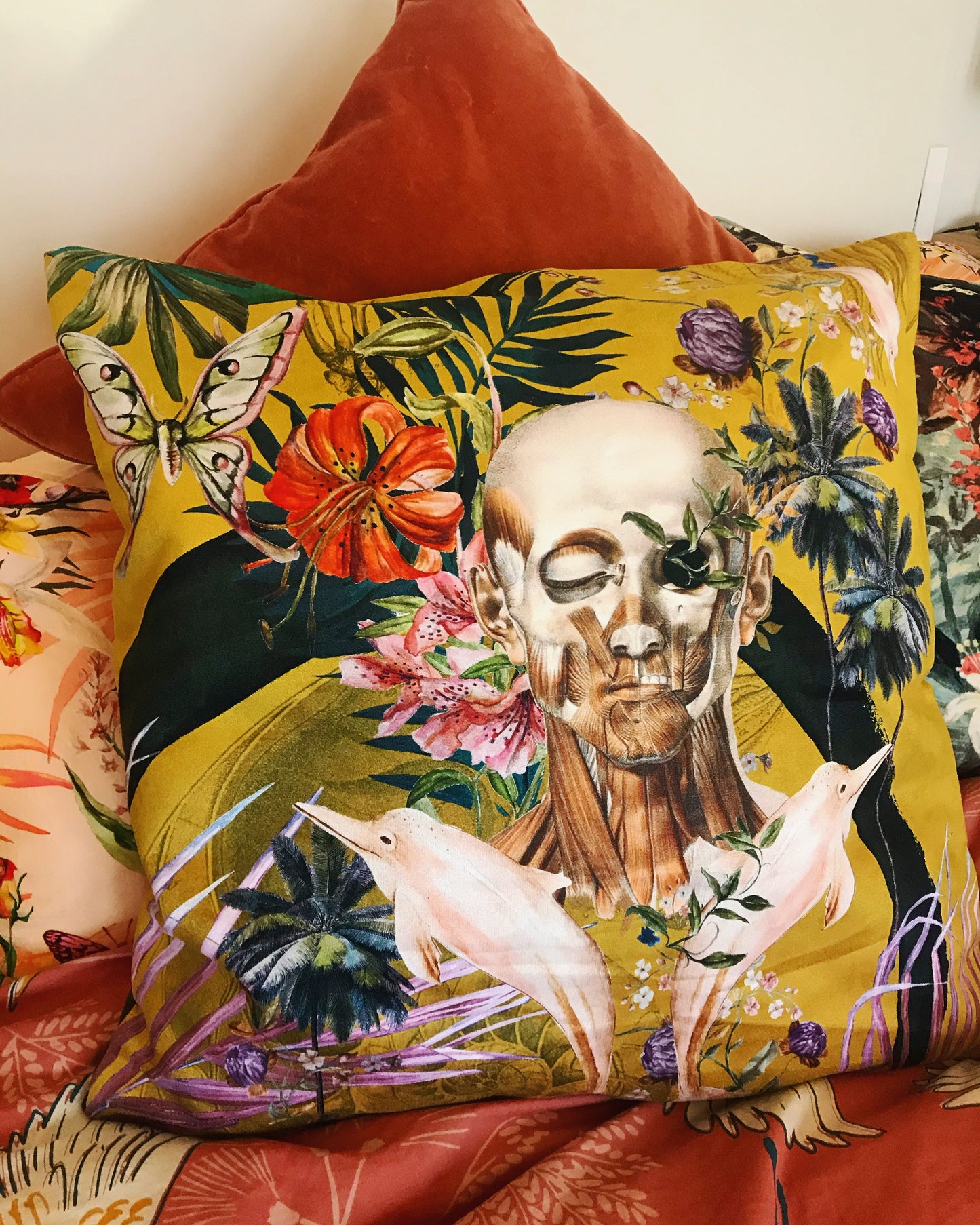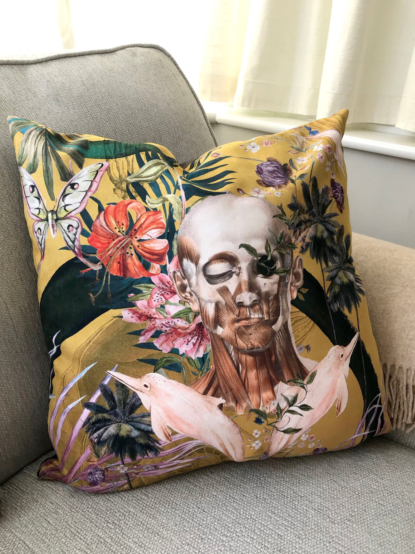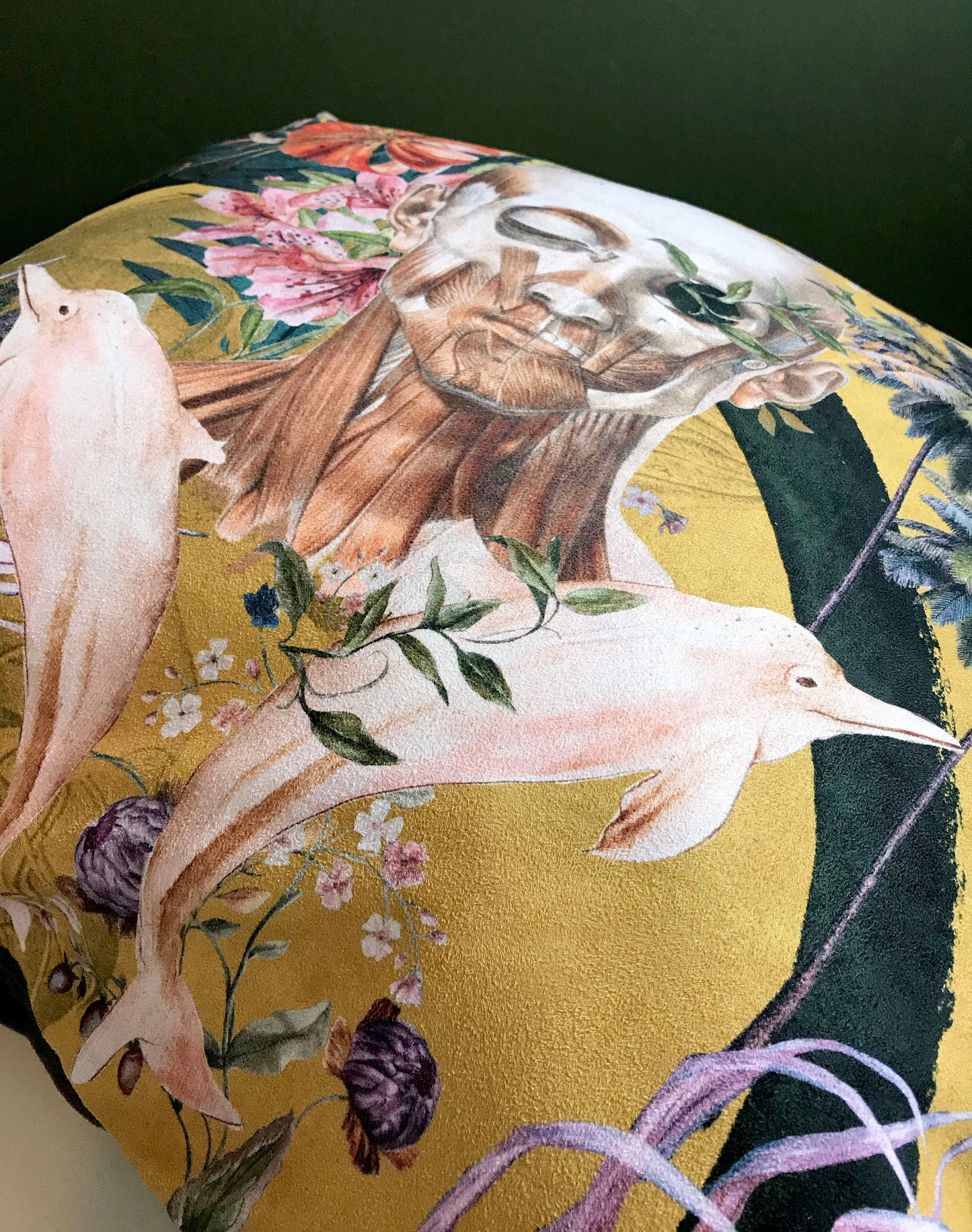 Luxury Cushion with anatomical motifs and pink river Dolphin