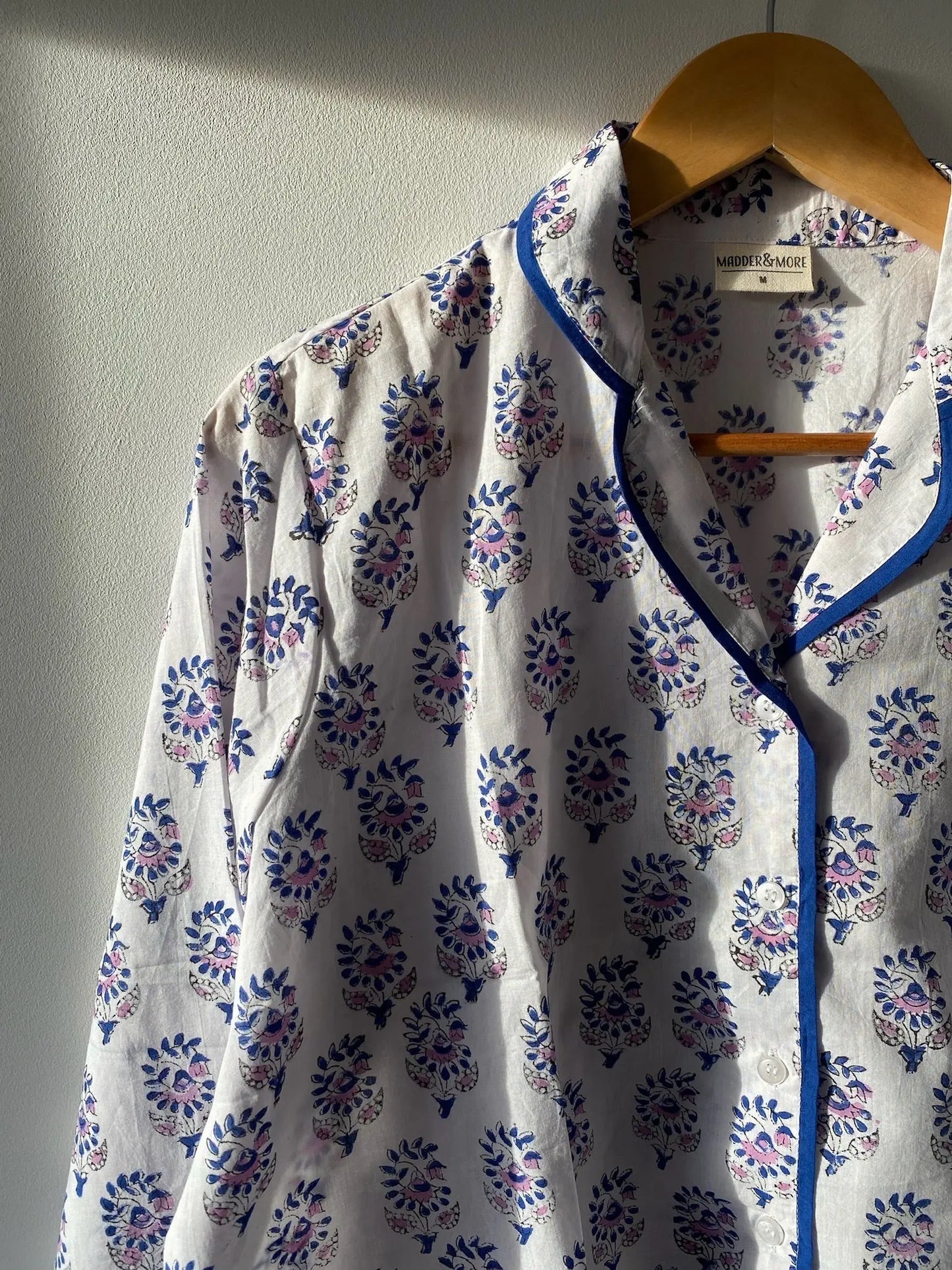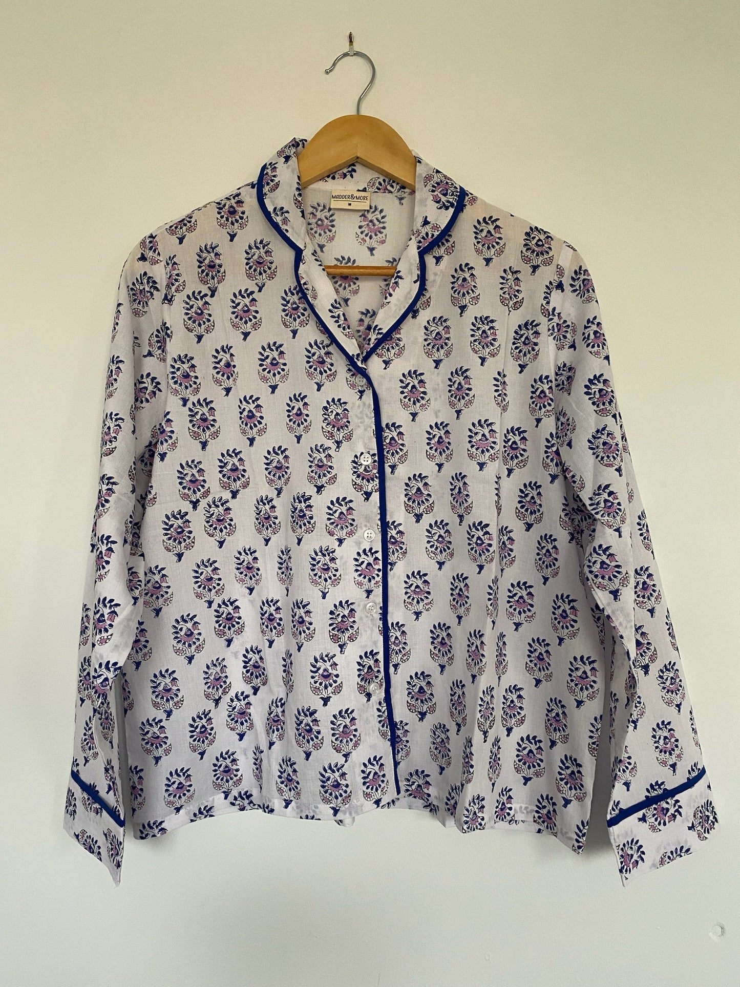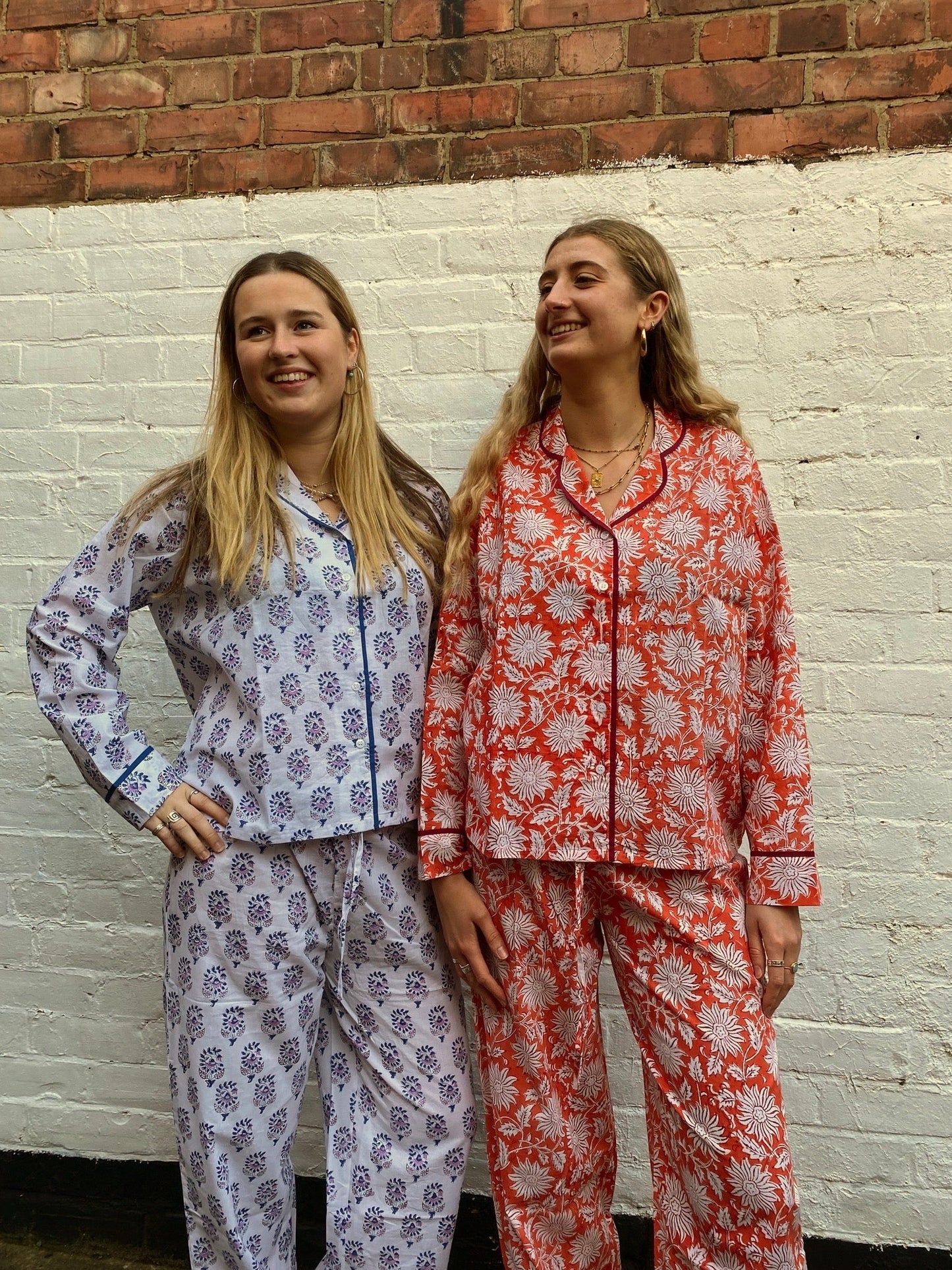 Our block printed long pyjama sets are handmade in Jaipur. The fabric is hand printed so please allow for discrepancies in designs as each set is unique.