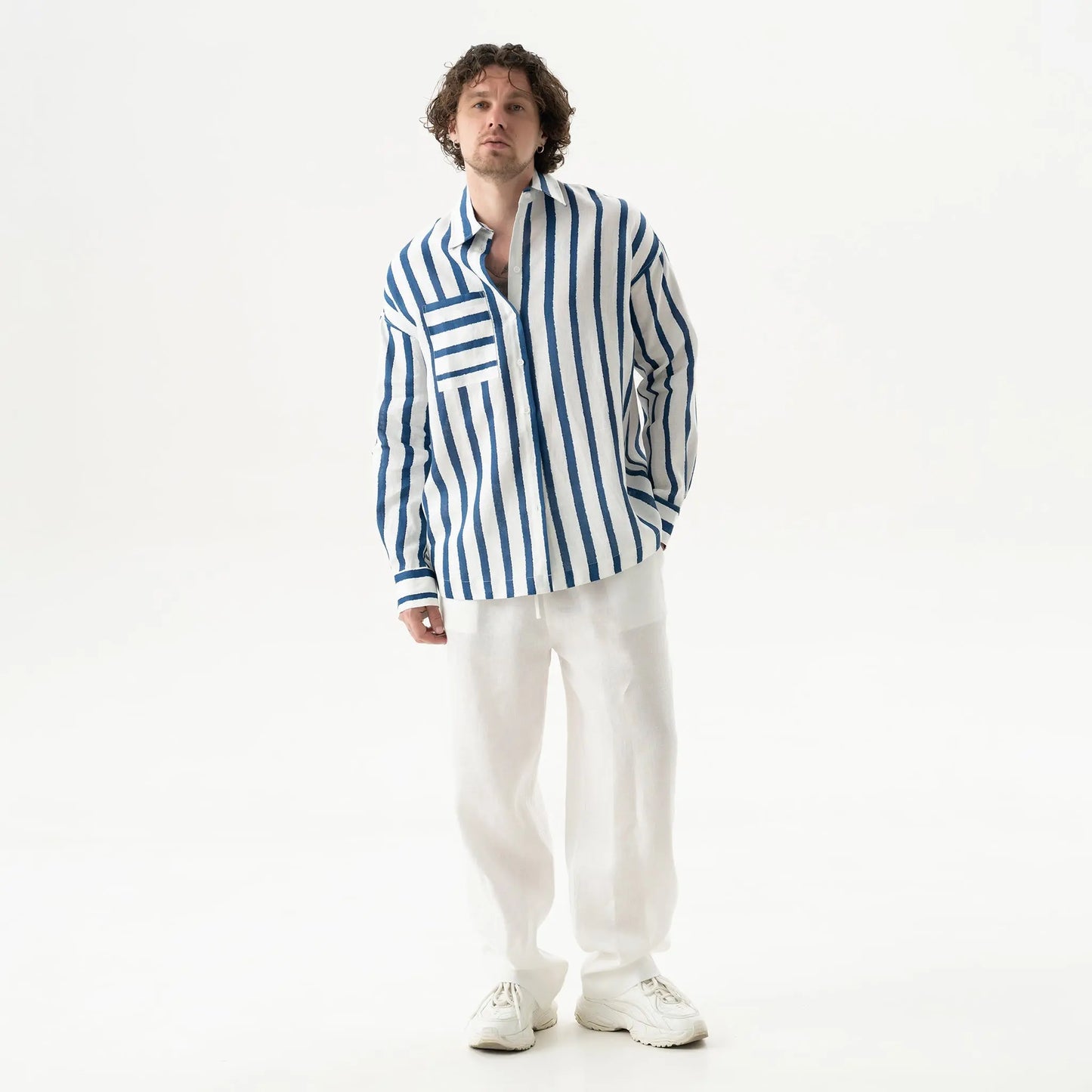 Style Tip: Style with a tonal white shirt for a serene palette, or let the striped shirt add a playful contrast.