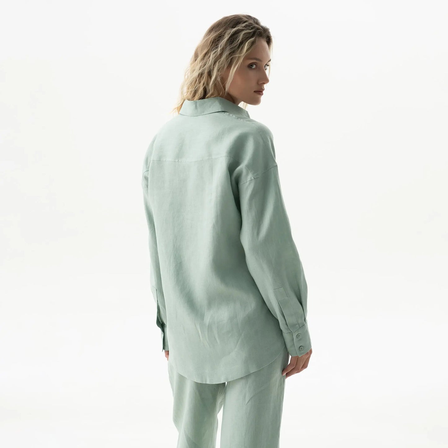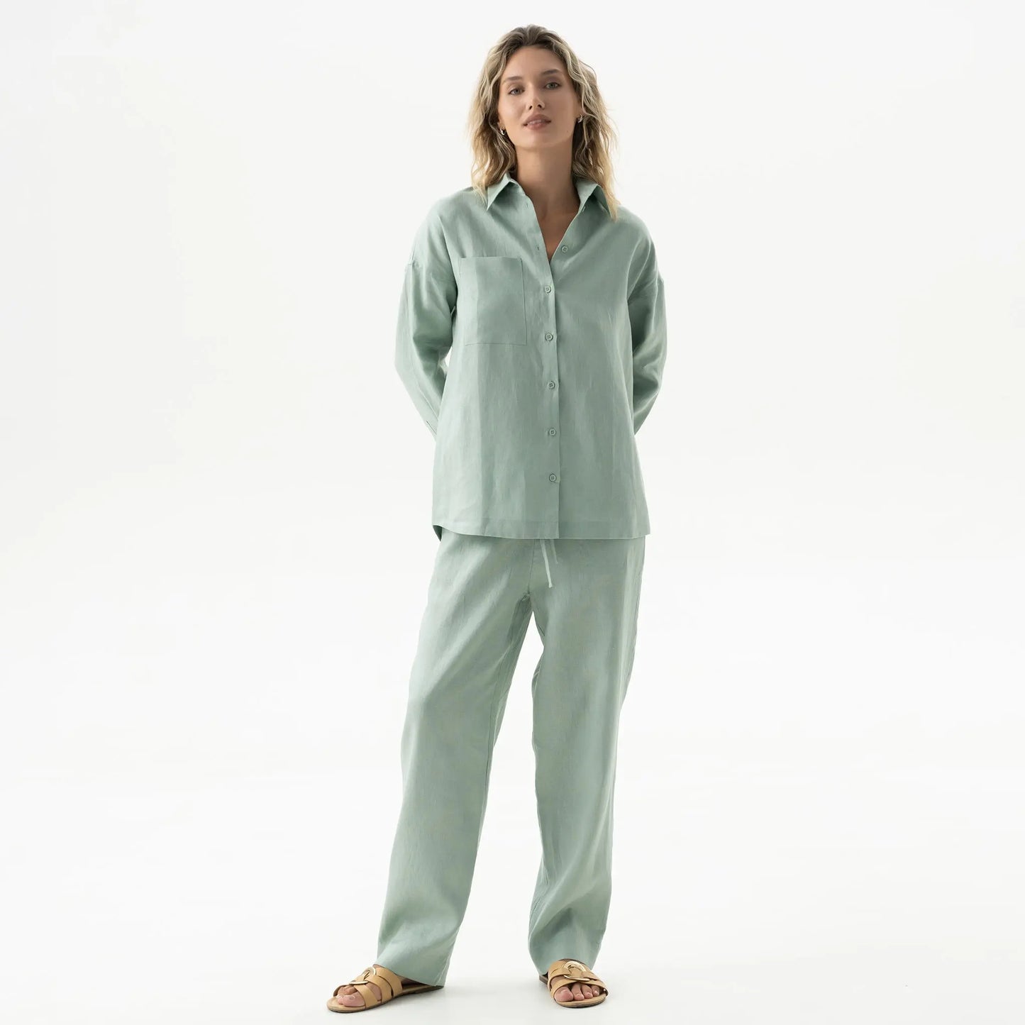 Style Tip: Pair with matching Sage Green linen trousers for a tonal take, or contrast with white pants for a fresh summer ensemble.